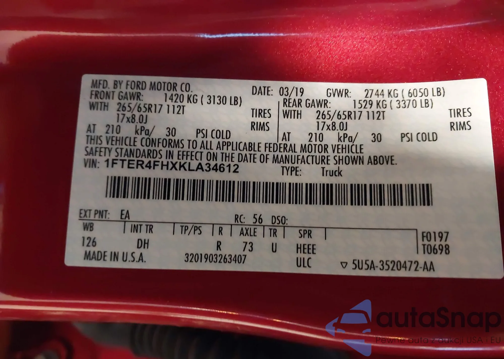 LOT: 44257096 VIN: 1FTER4FHXKLA34612