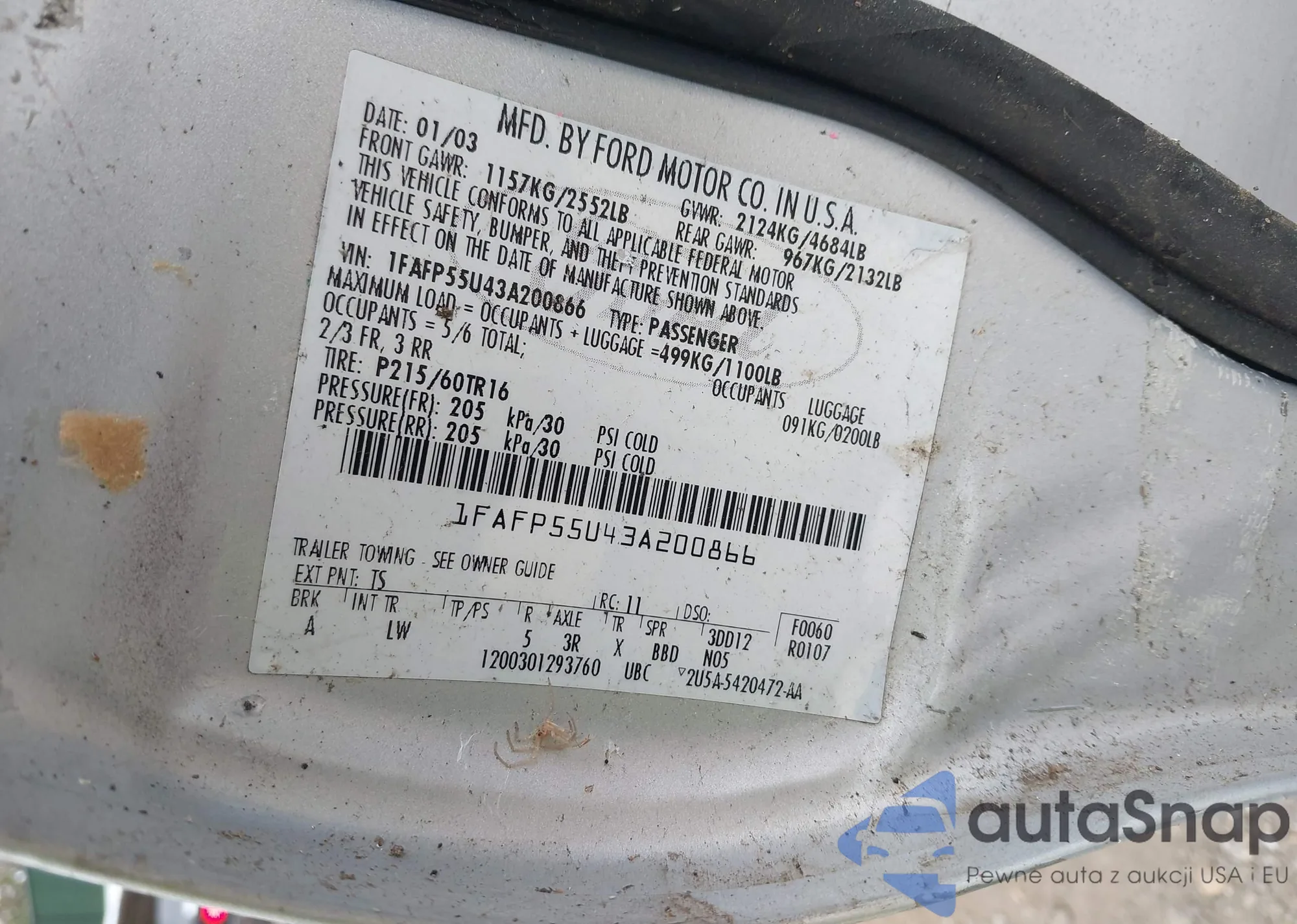 LOT: 43578267 VIN: 1FAFP55U43A200866