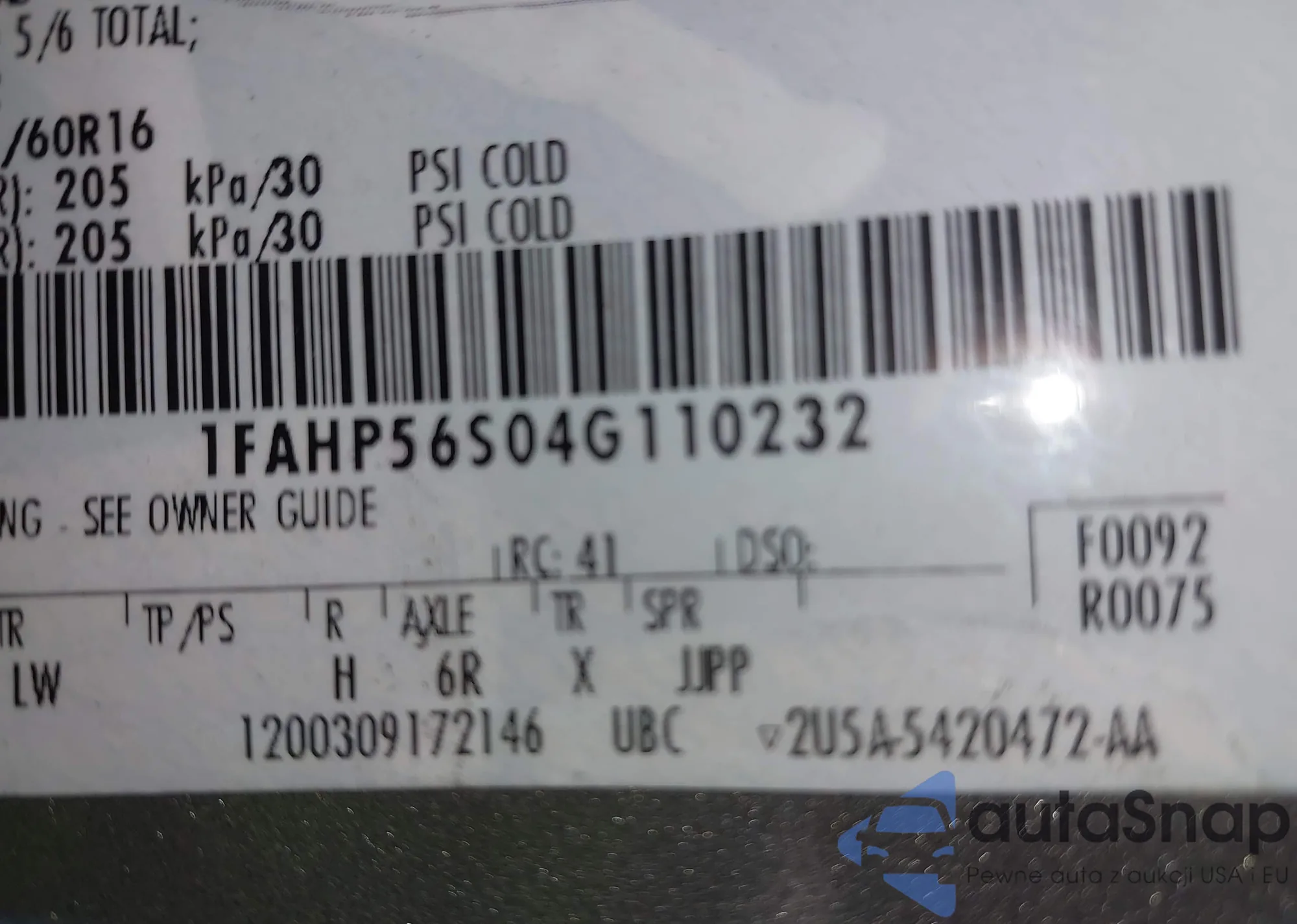 • VIN 1FAHP56S04G110232