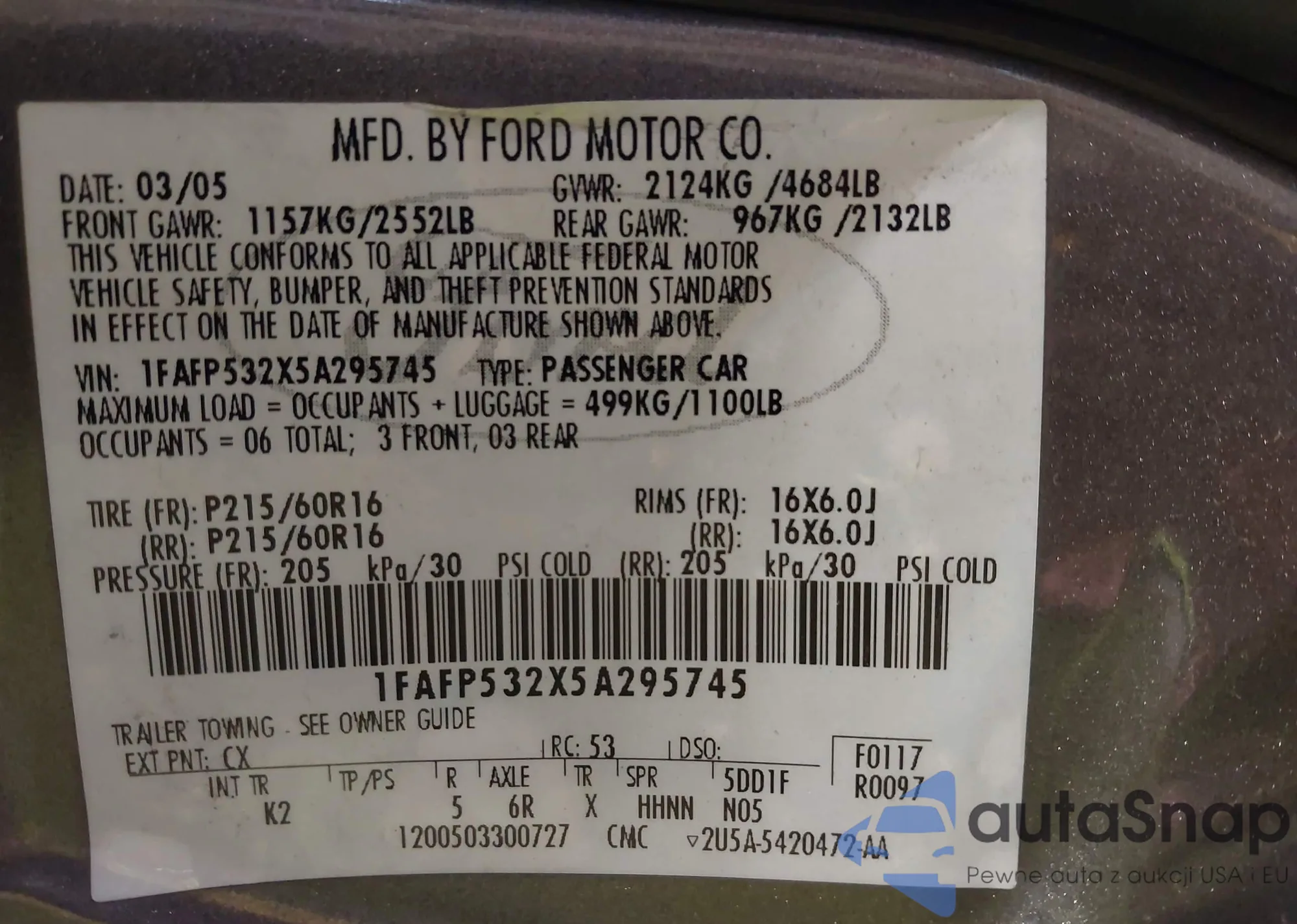 LOT: 98912365 VIN: 1FAFP55U94G168737
