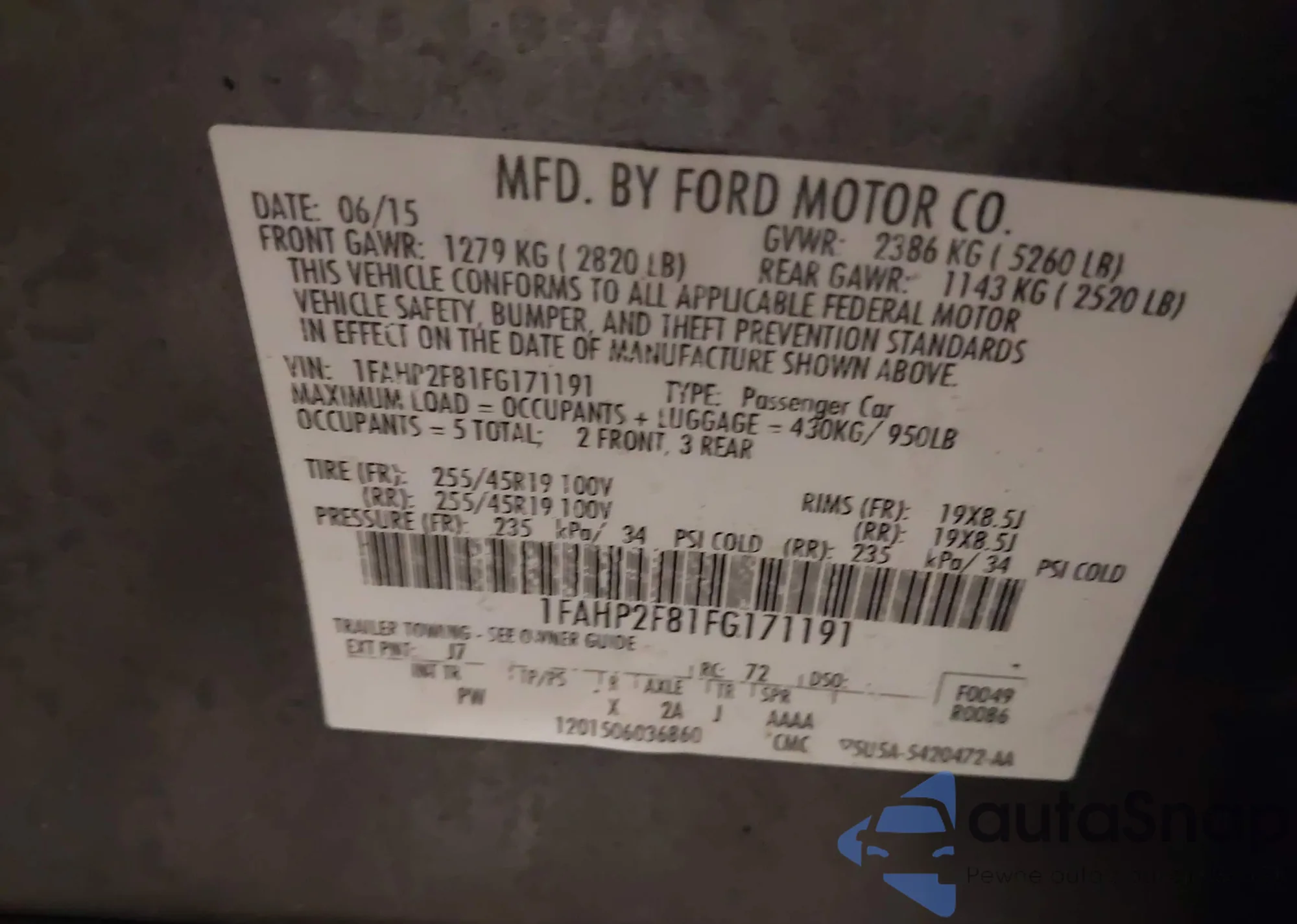 LOT: 44187763 VIN: 1FAHP2F81FG171191