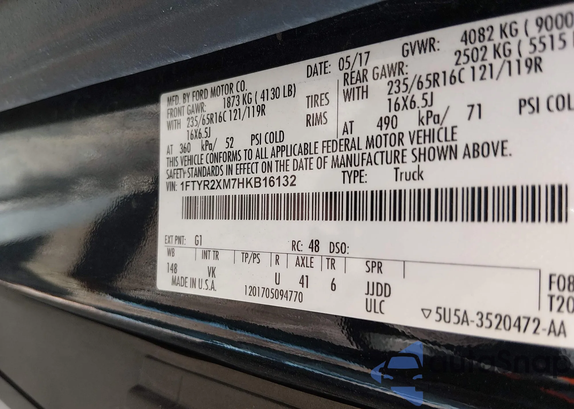 • VIN 1FTYR2XM7HKB16132