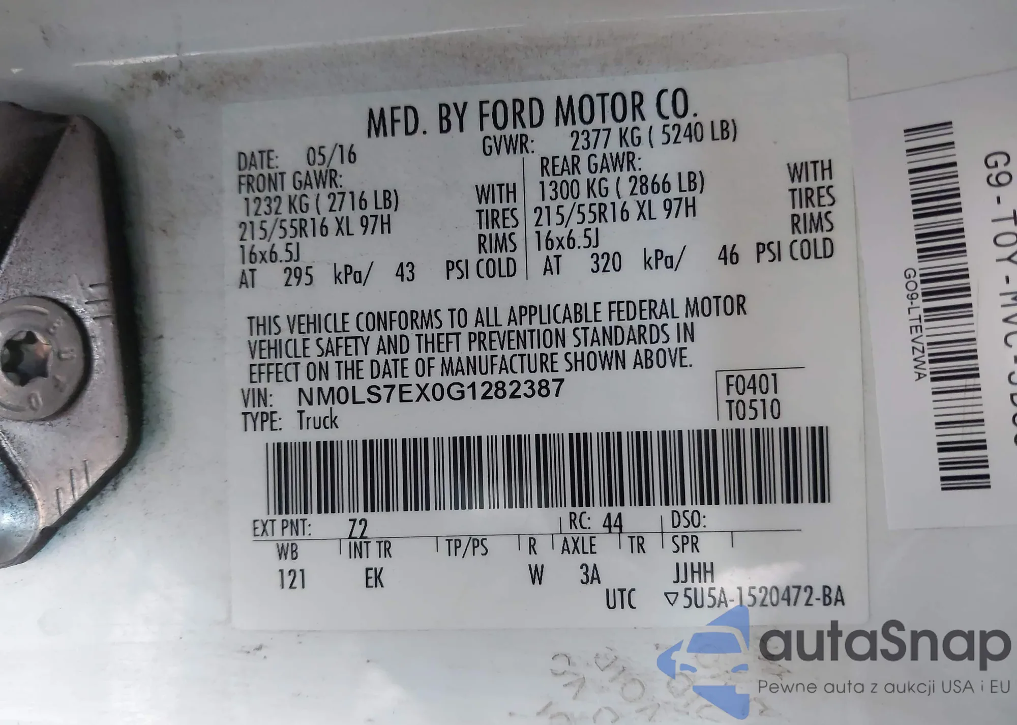 LOT: 44121371 VIN: NM0LS7EX0G1282387