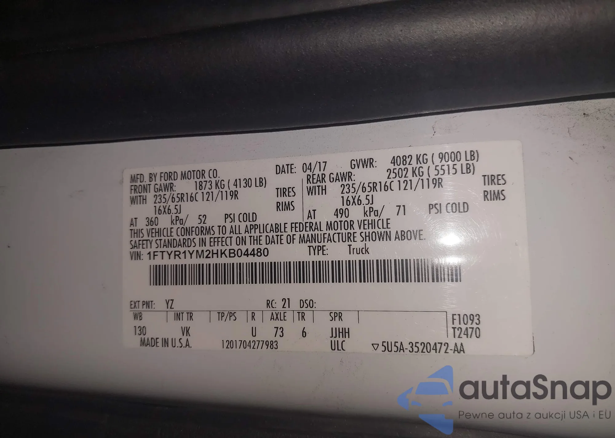 • VIN 1FTYR1YM2HKB04480