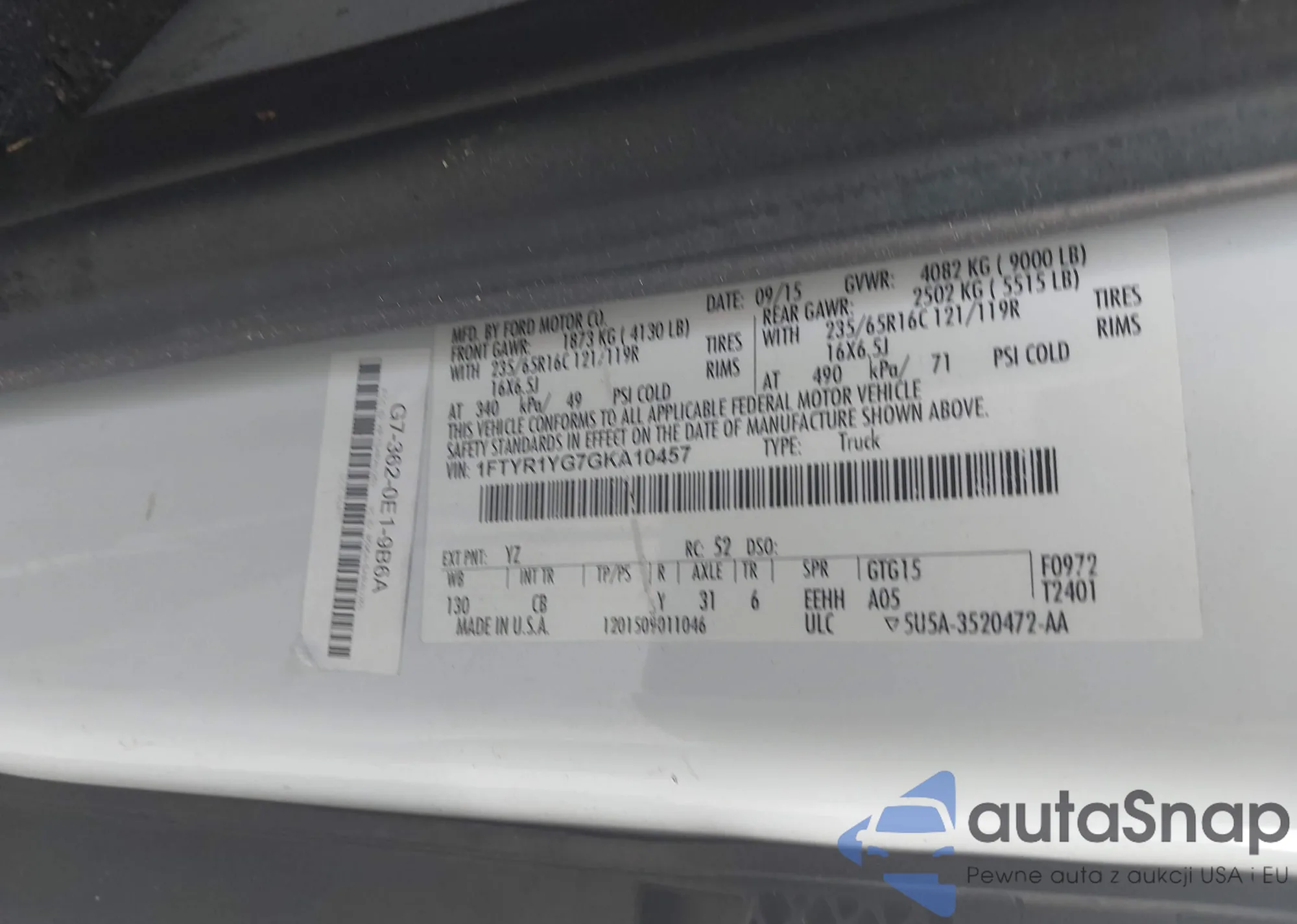 • VIN 1FTYR1YG7GKA10457