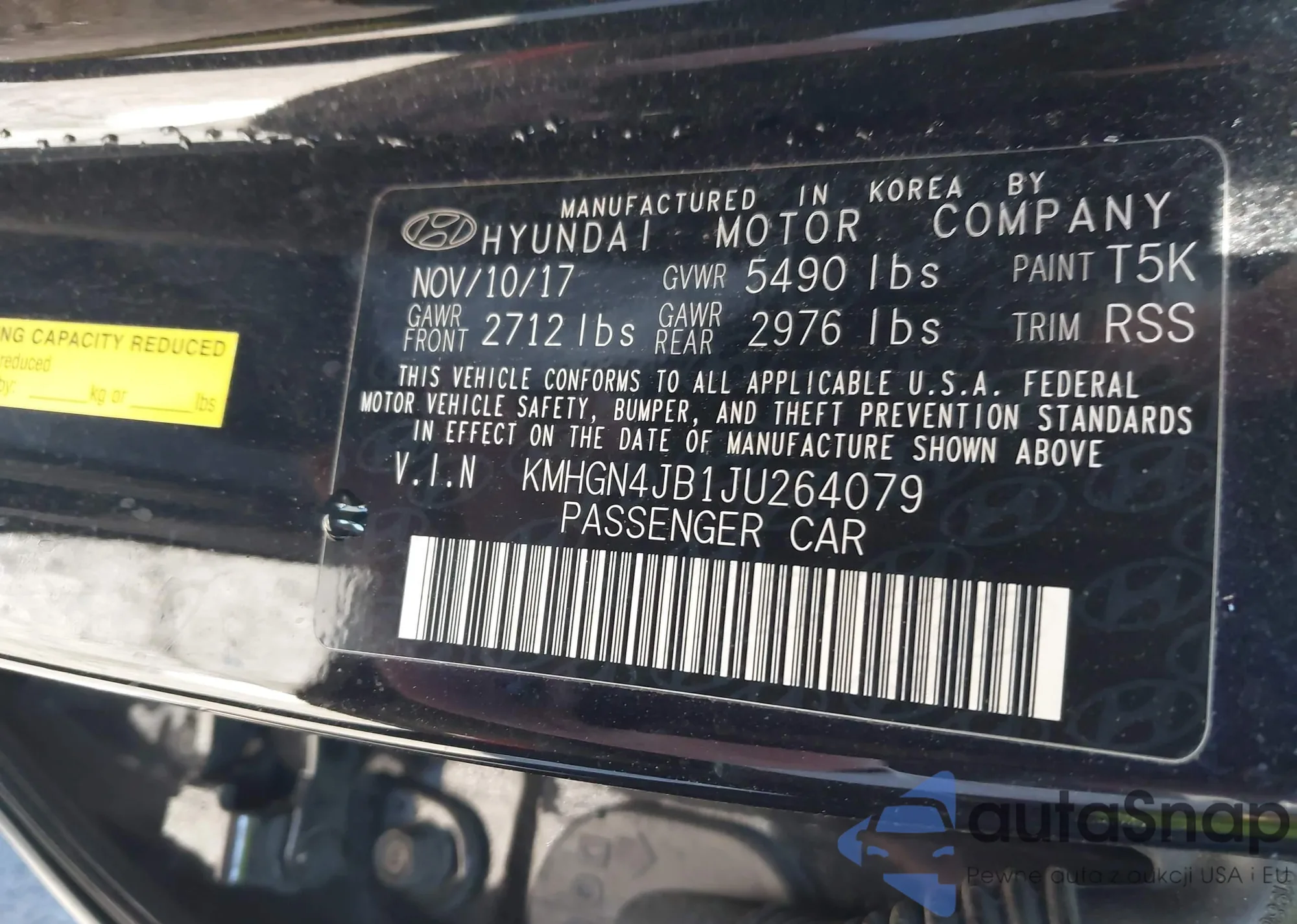 LOT: 44443250 VIN: KMHGN4JF1HU206731