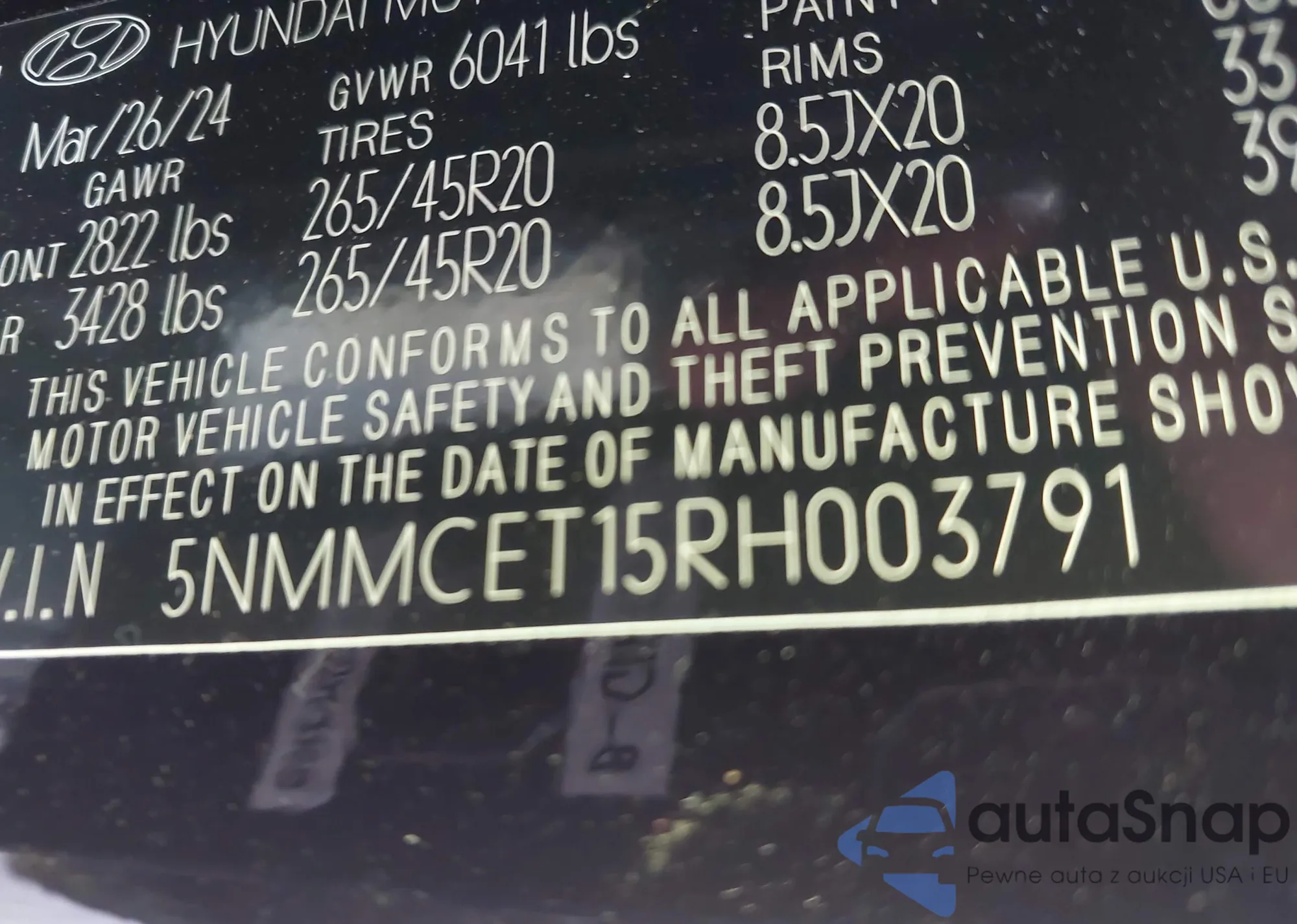 • VIN 5NMMCET15RH003791