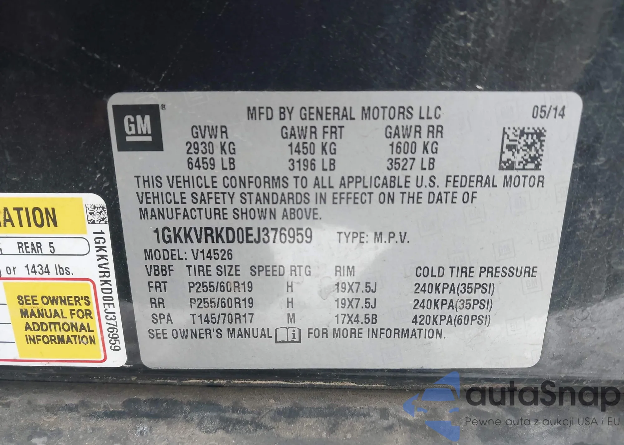 • VIN 1GKKVRKD0EJ376959