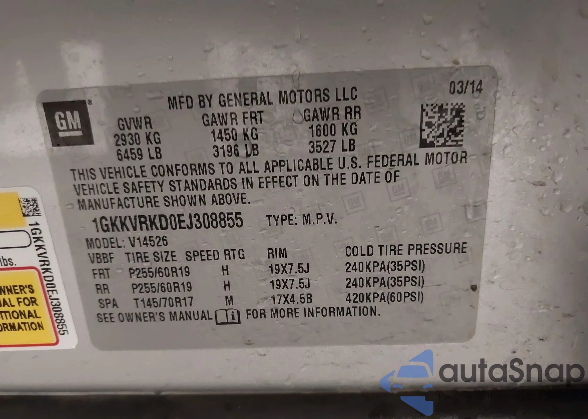 • VIN 1GKKVRKD0EJ308855