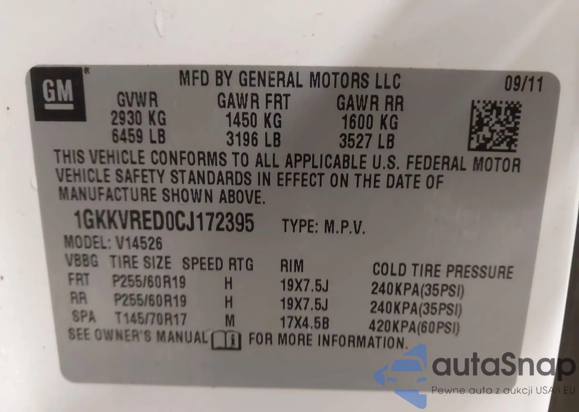• VIN 1GKKVRED0CJ172395