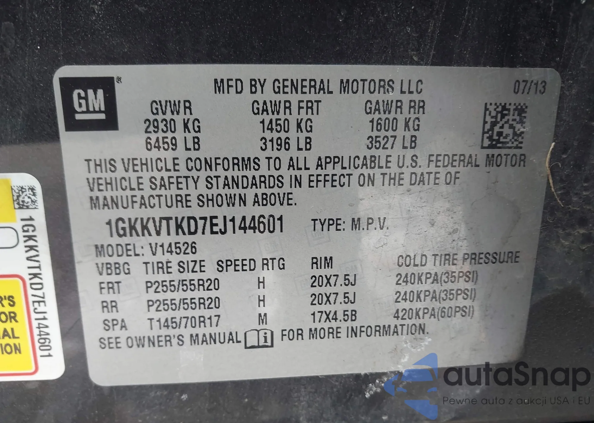 • VIN 1GKKVTKD7EJ144601