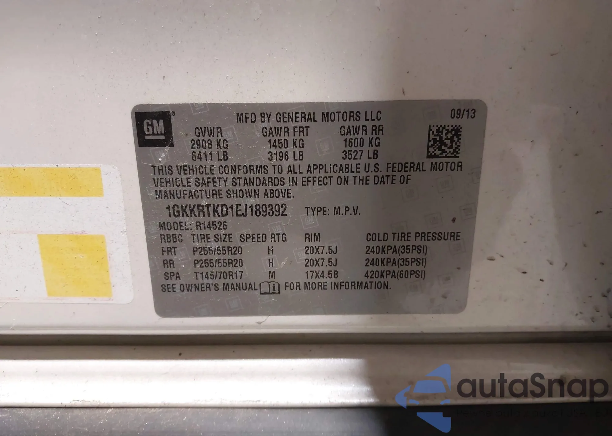 • VIN 1GKKRTKD1EJ189392