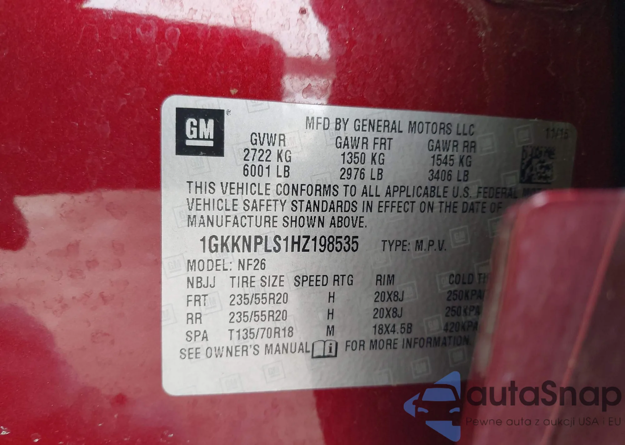 • VIN 1GKKNPLS1HZ198535