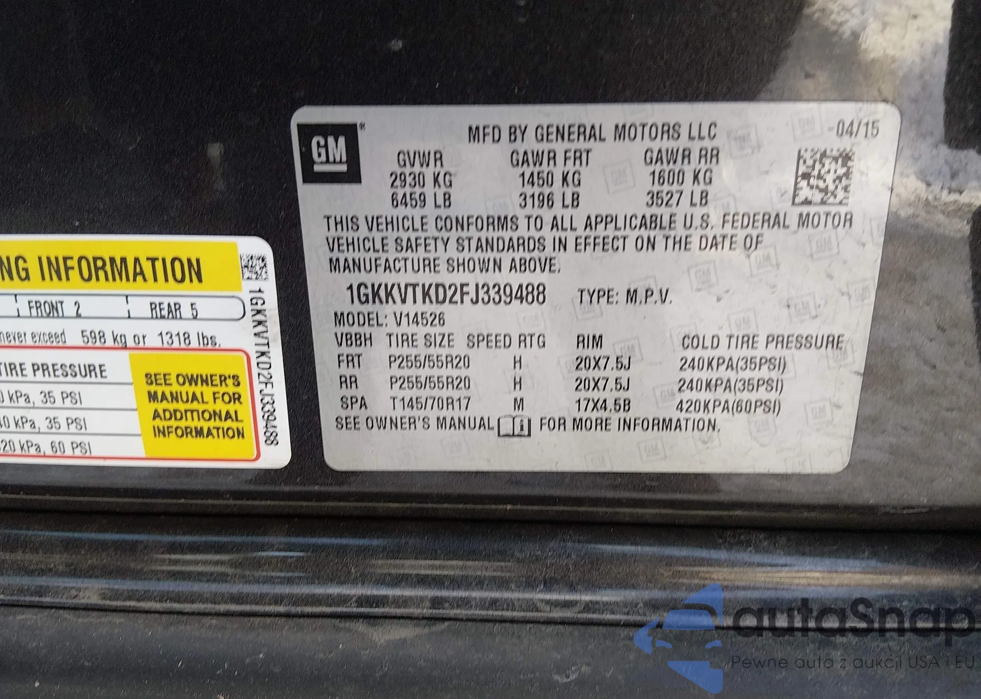 • VIN 1GKKVTKD2FJ339488