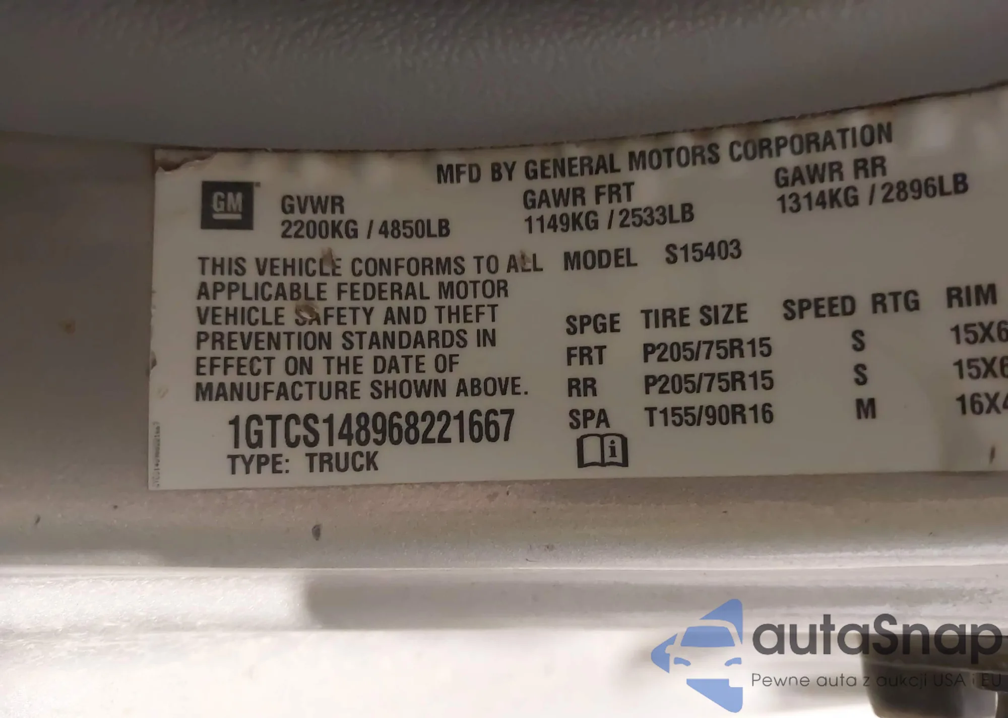 • VIN 1GTCS148968221667