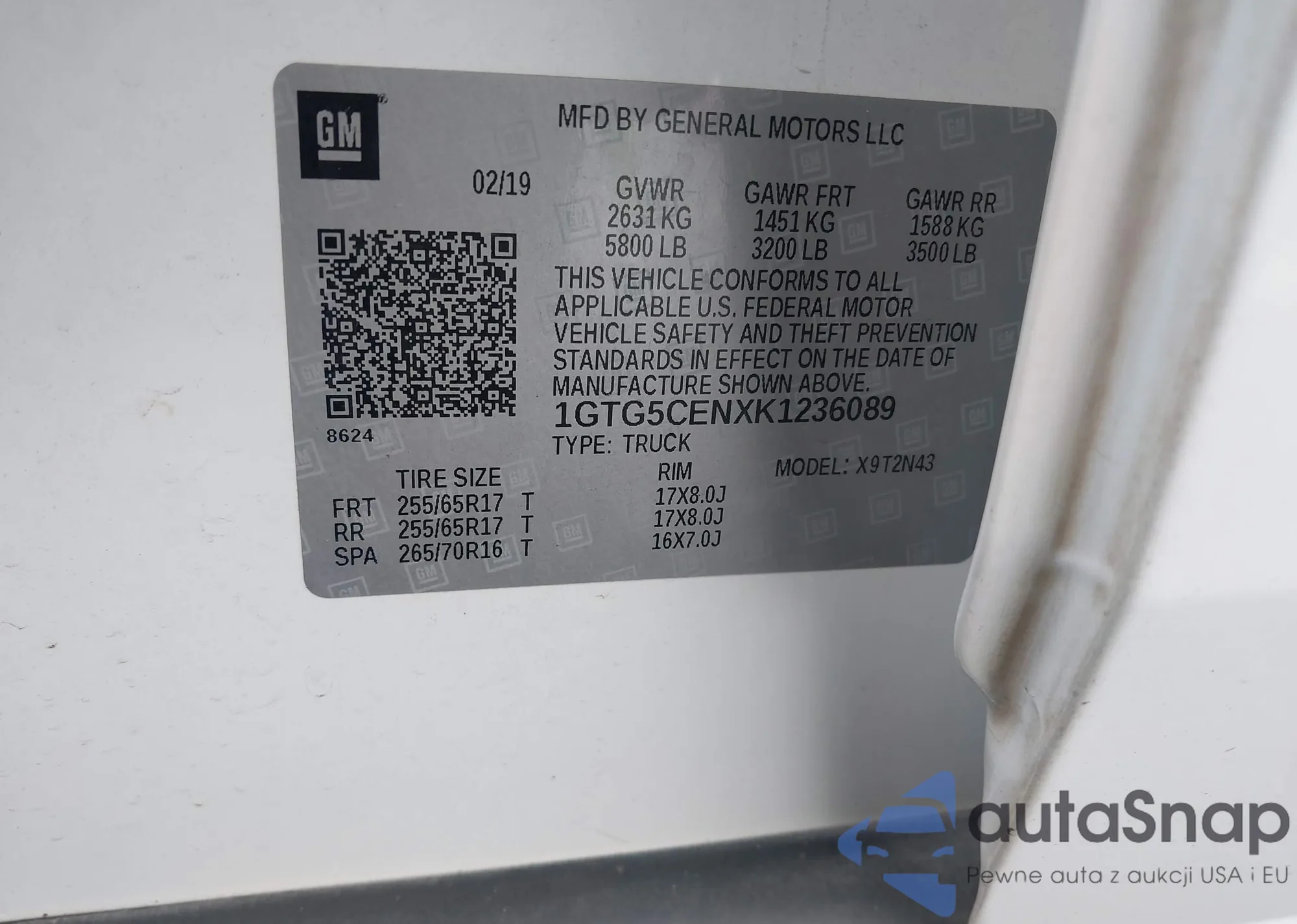 LOT: 44355062 VIN: 1GTG5CENXK1236089