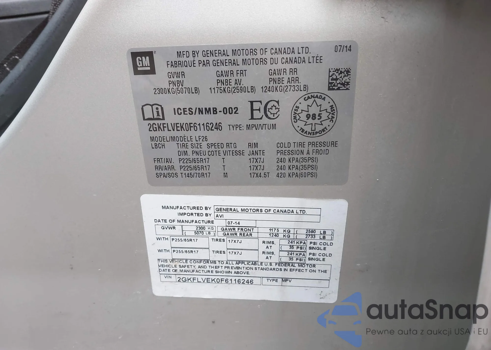 • VIN 2GKFLVEK0F6116246