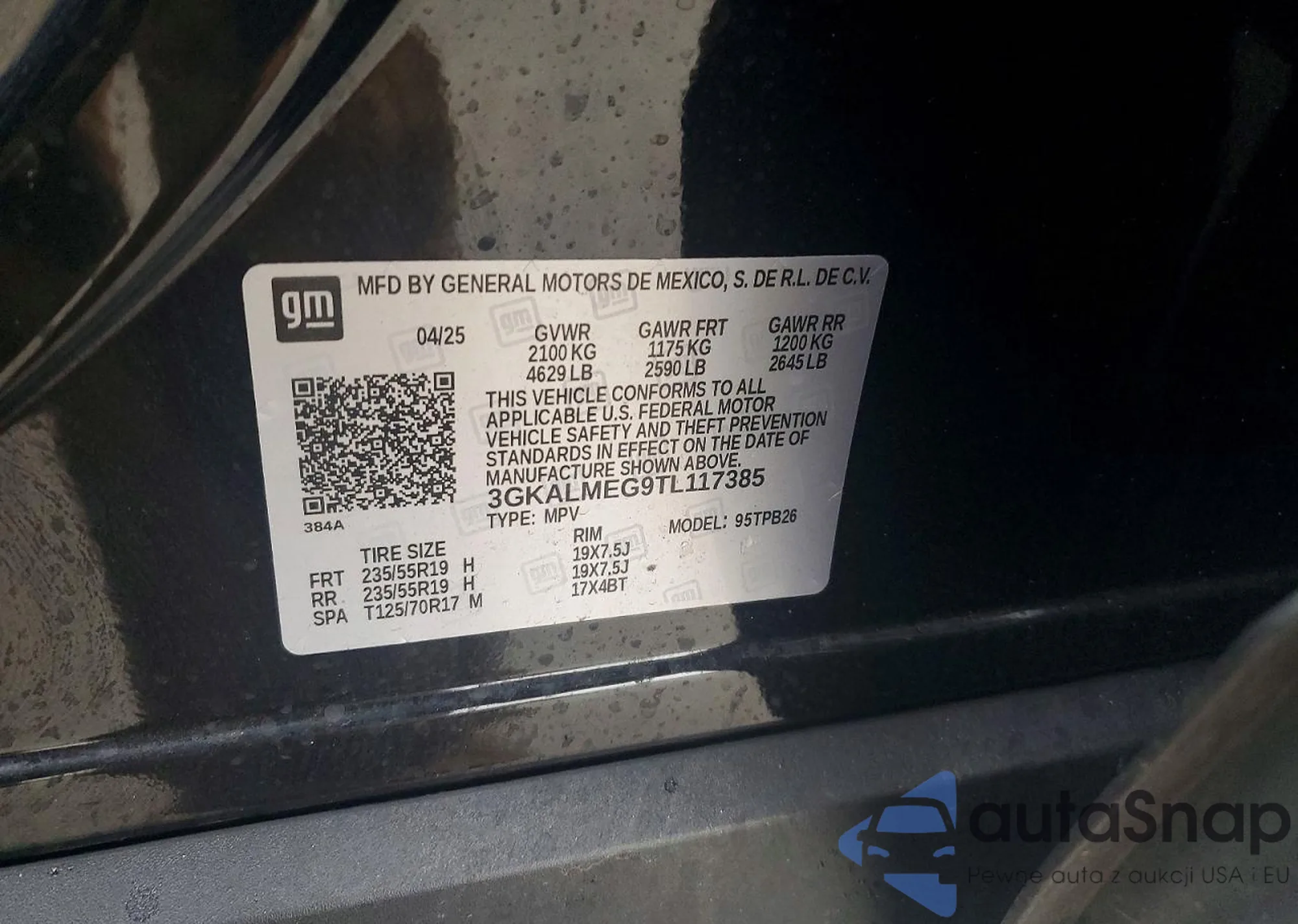 LOT: 98145475 VIN: 3GKALUEG6TL219601