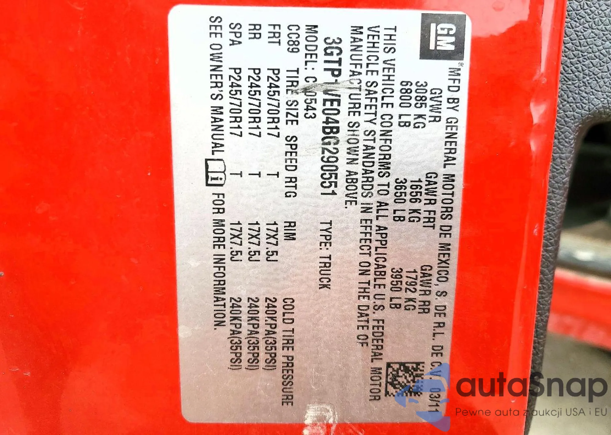 • VIN 3GTP1VE04BG290551