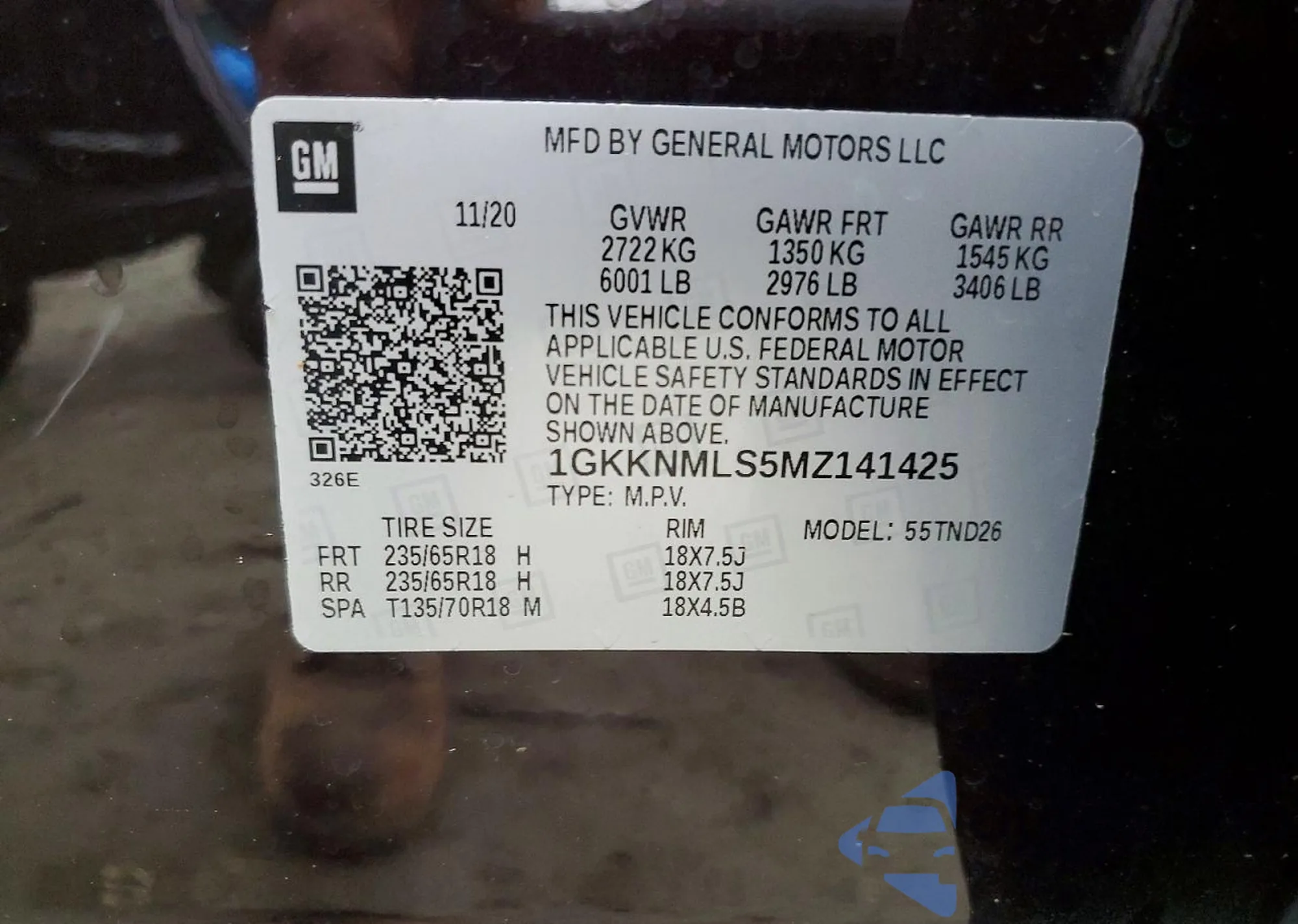 • VIN 1GKKNMLS5MZ141425