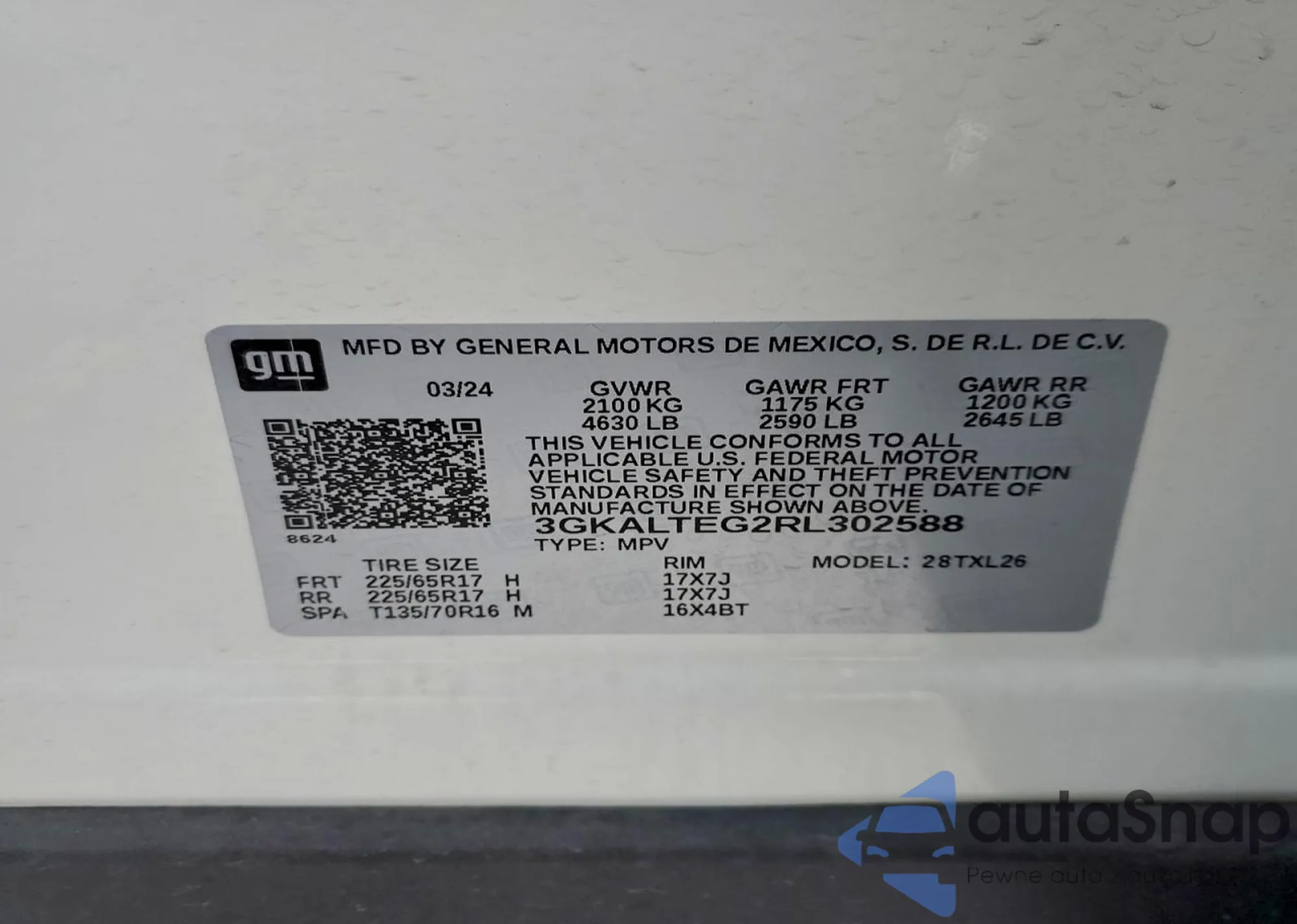 LOT: 98948005 VIN: 3GKALTEG2RL302588