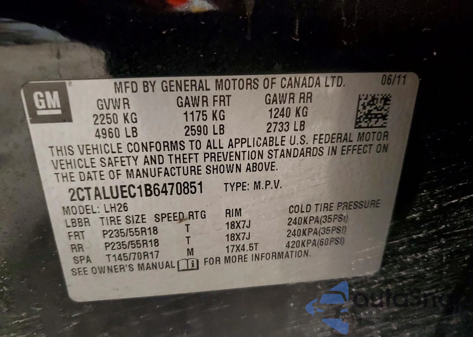 • VIN 2CTALUEC1B6470851
