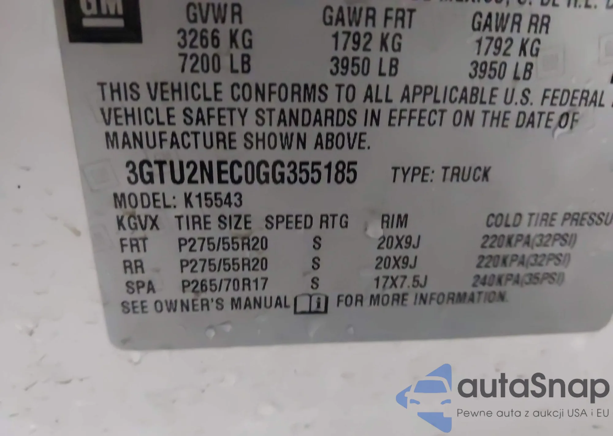 • VIN 3GTU2NEC0GG355185