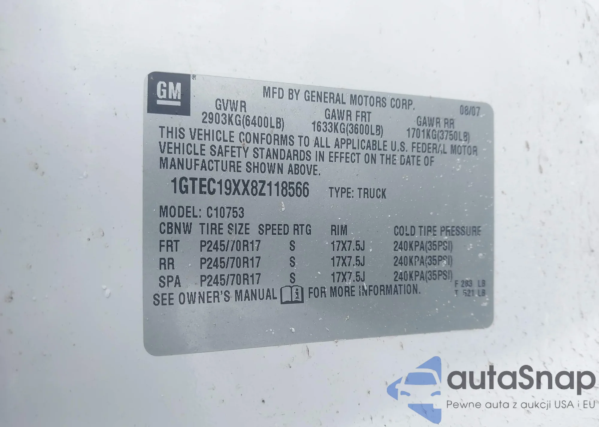 • VIN 1GTEC19XX8Z118566