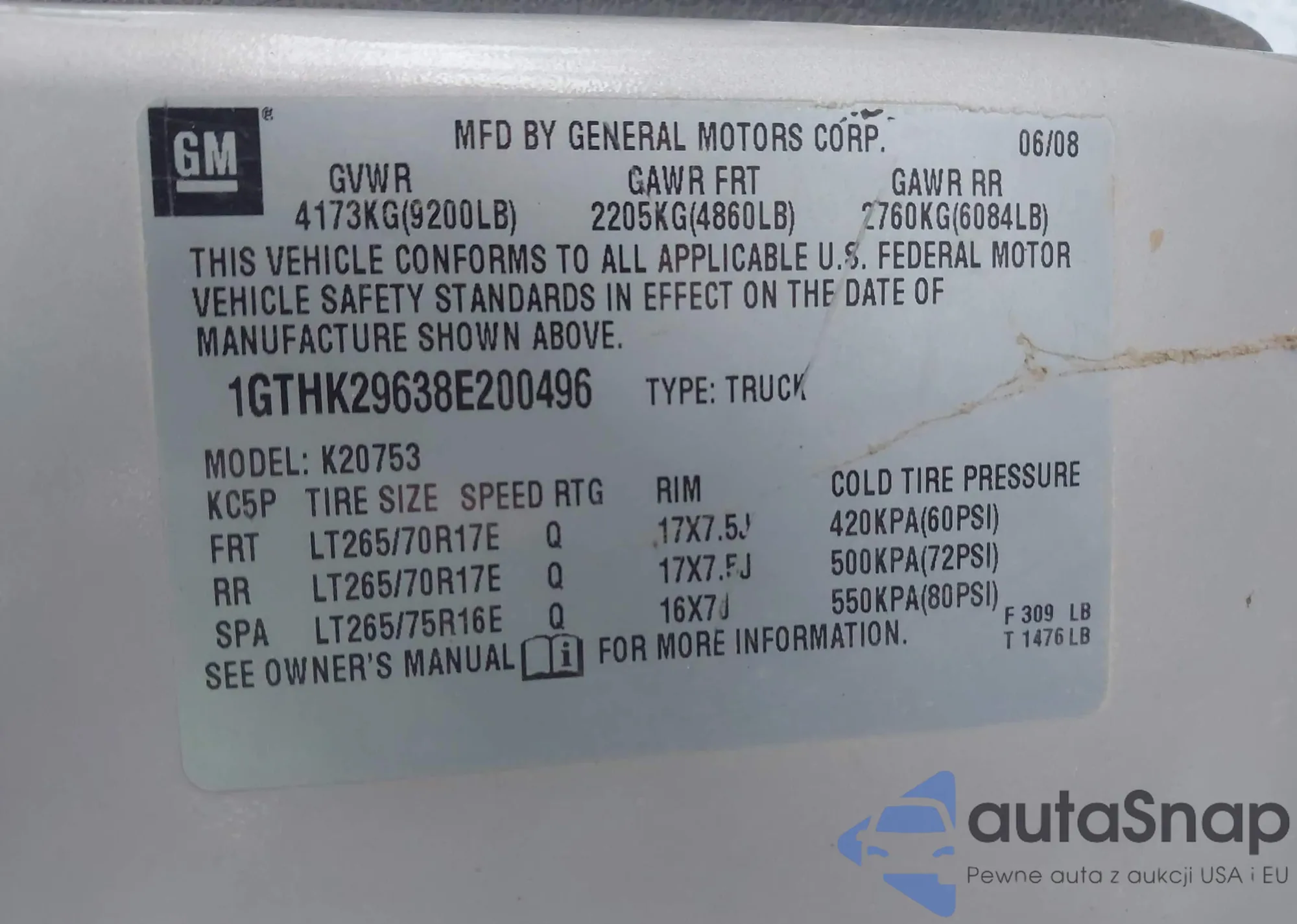 • VIN 1GTHK29638E200496