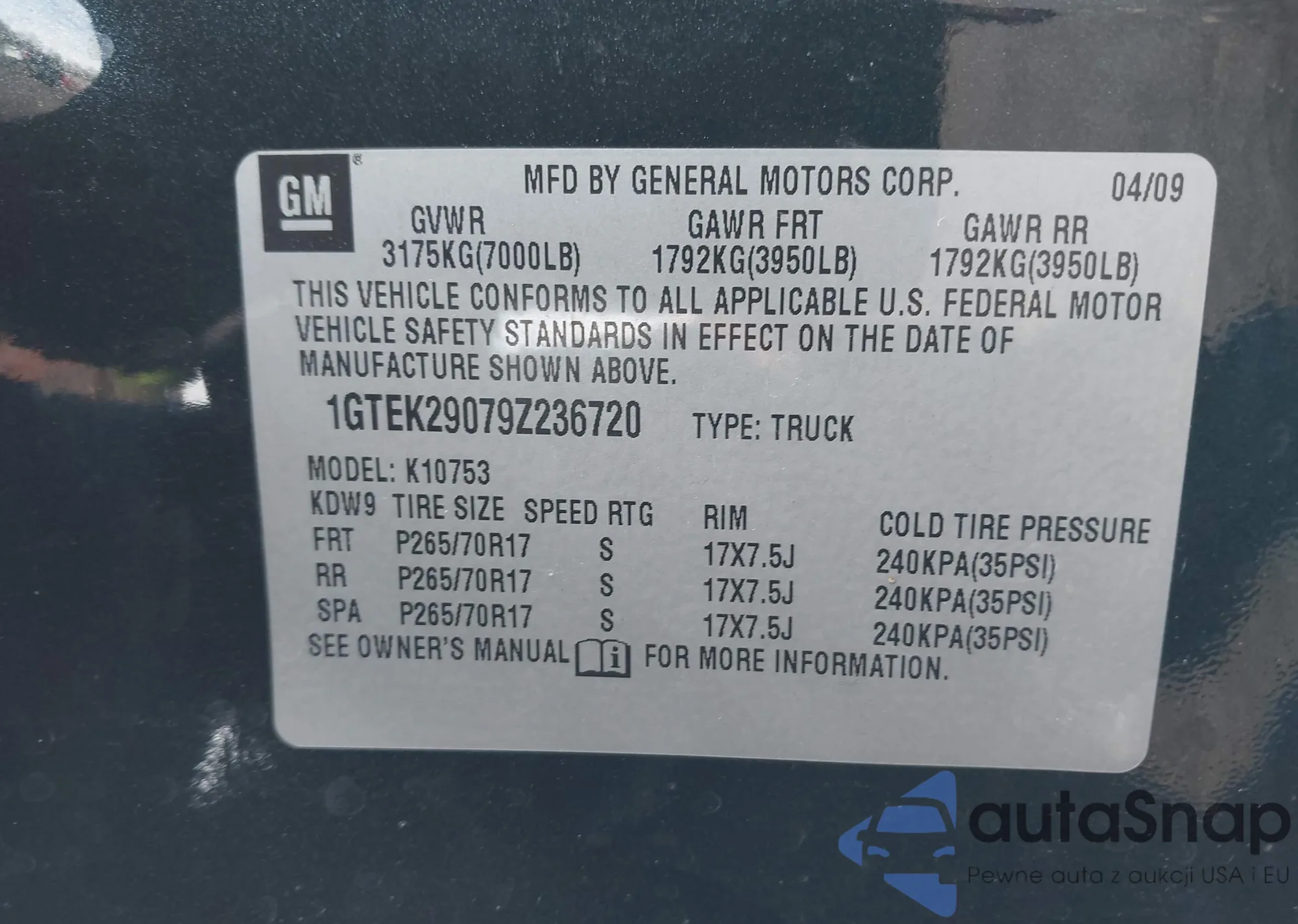 • VIN 1GTEK29079Z236720