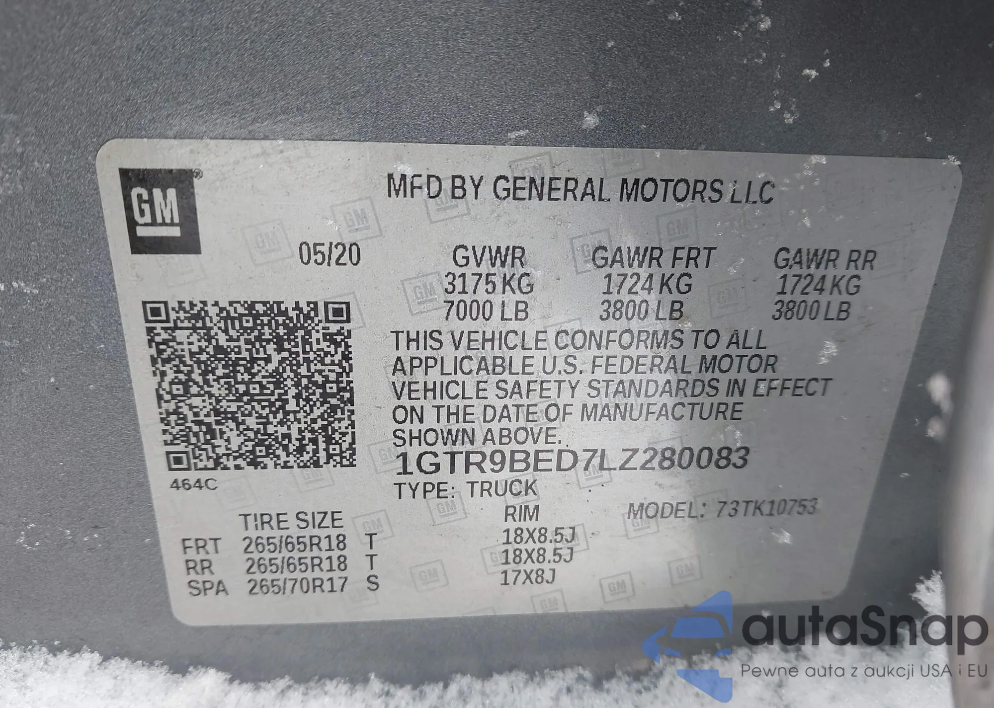 • VIN 1GTR9BED7LZ280083