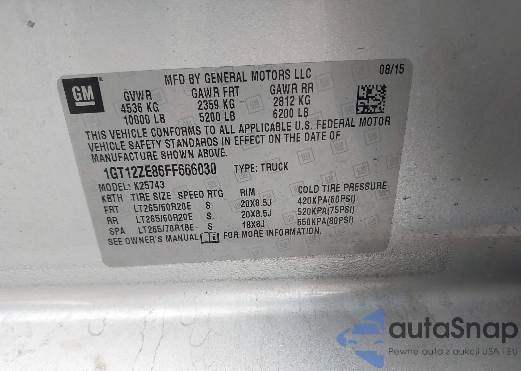 • VIN 1GT12ZE86FF666030
