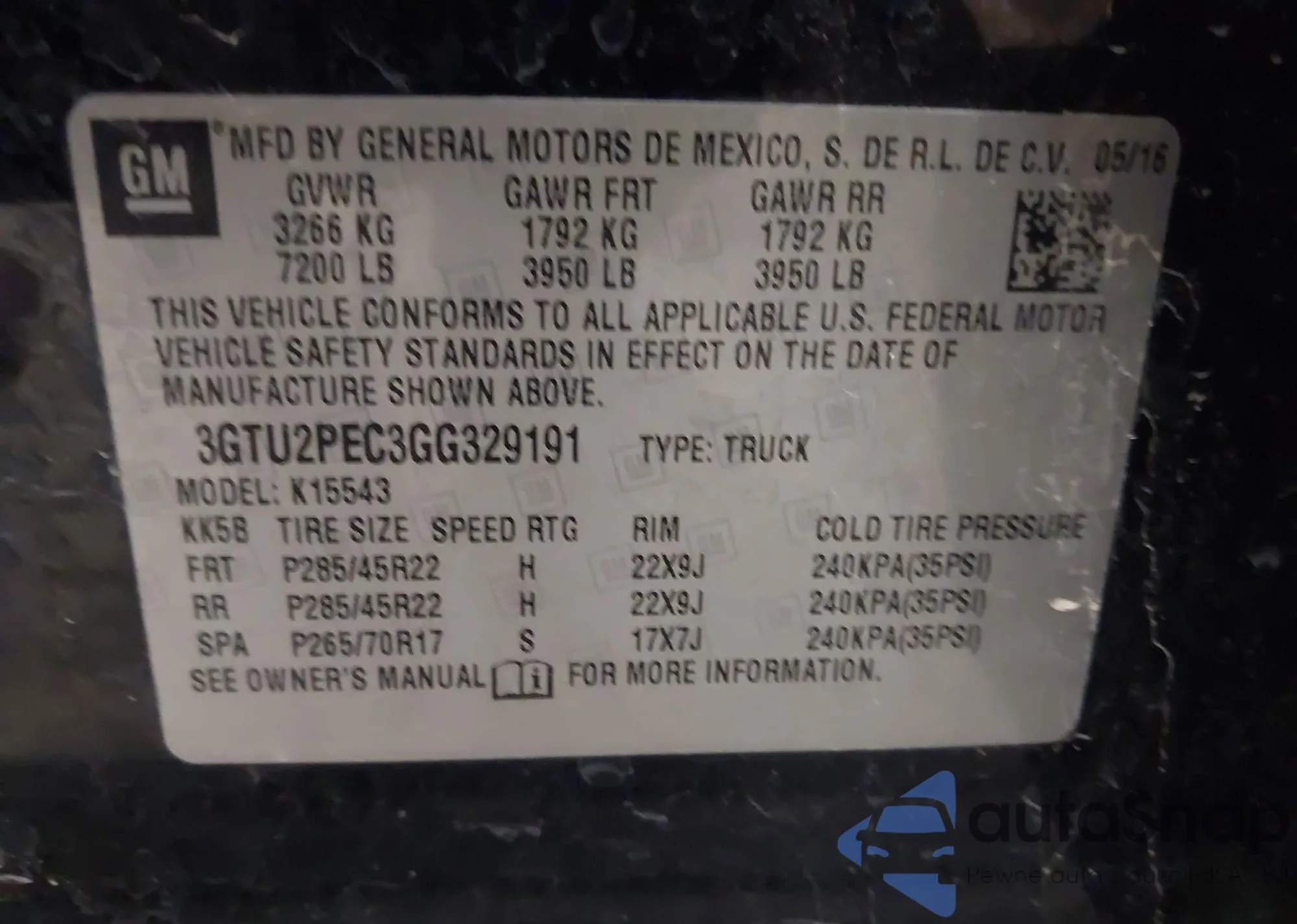 • VIN 3GTU2PEC3GG329191