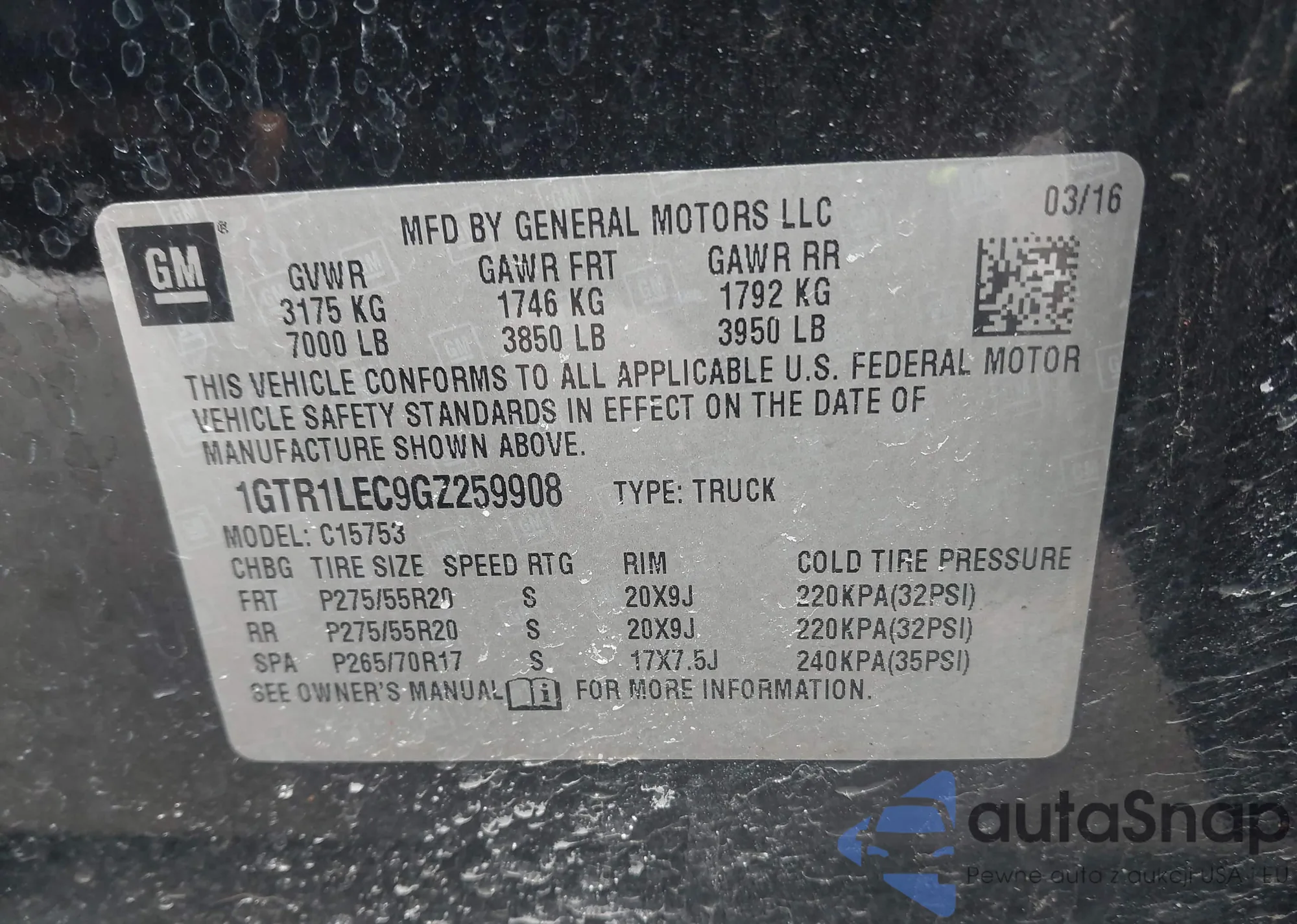 • VIN 3GTU2LEH8GG103233