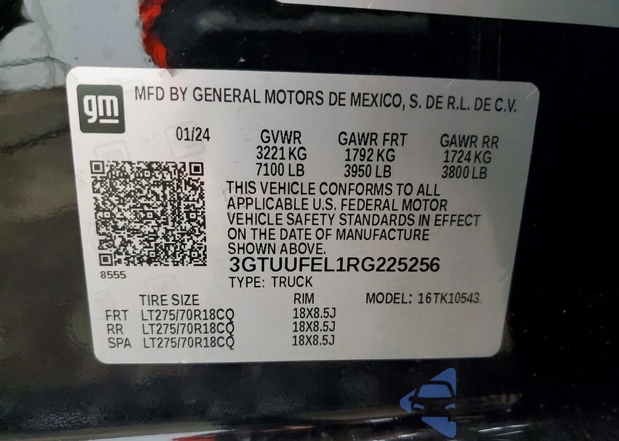 • VIN 3GTUUFEL1RG225256