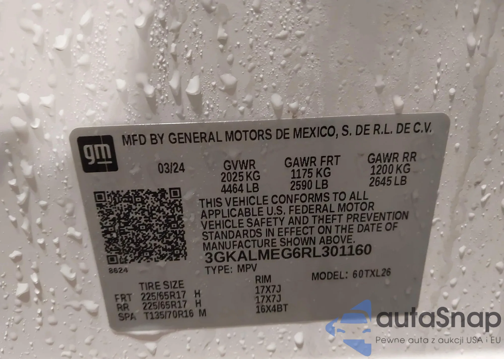 LOT: 43860281 VIN: 3GKALMEG6RL301160