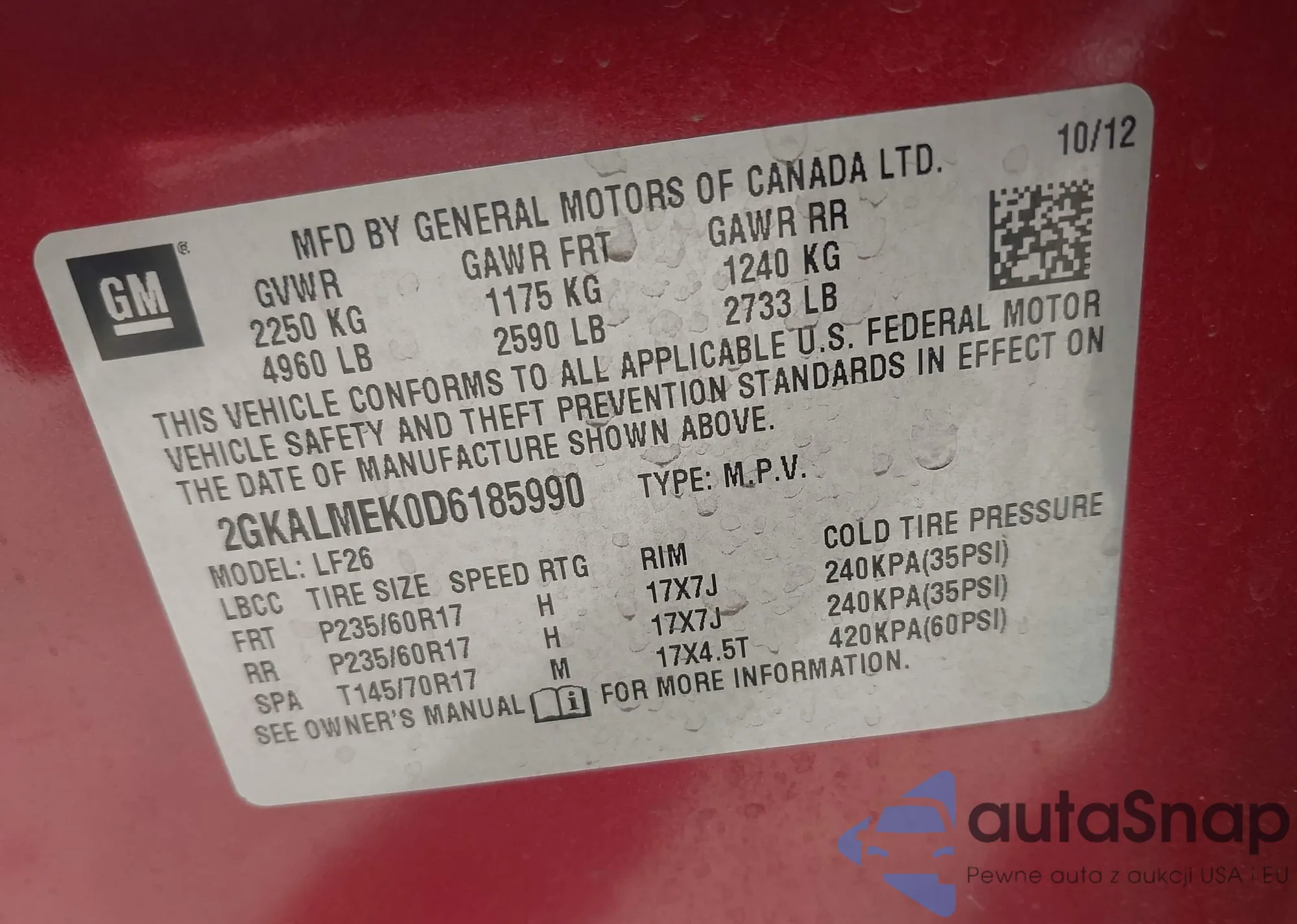 • VIN 2GKALMEK0D6185990