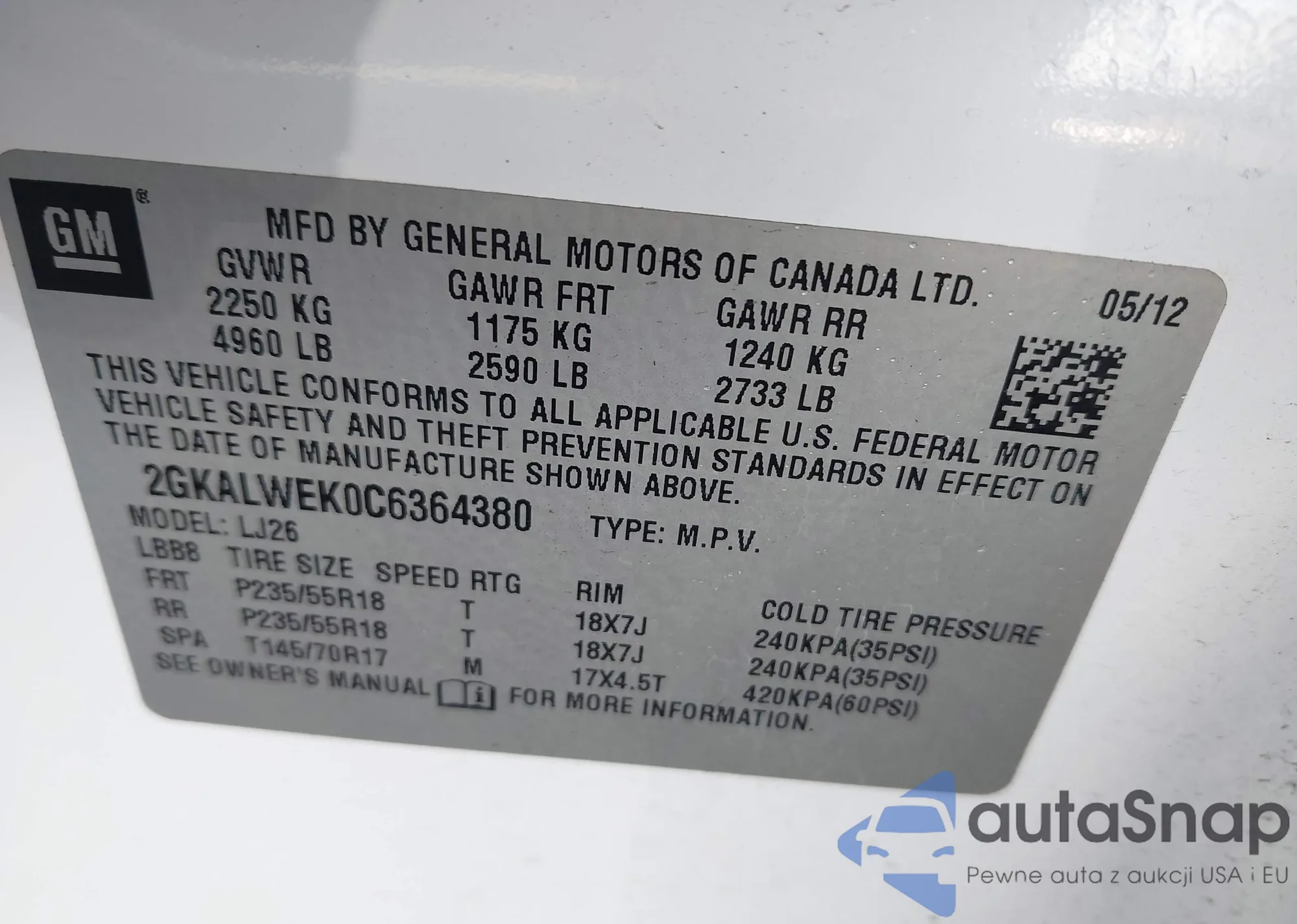 • VIN 2GKALWEK0C6364380