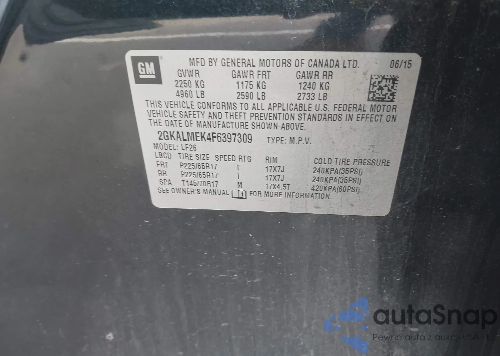 • VIN 2GKALMEK4F6397309