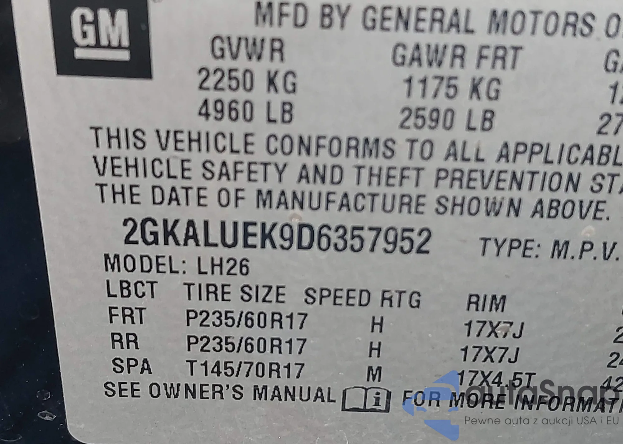 • VIN 2GKALUEK9D6357952