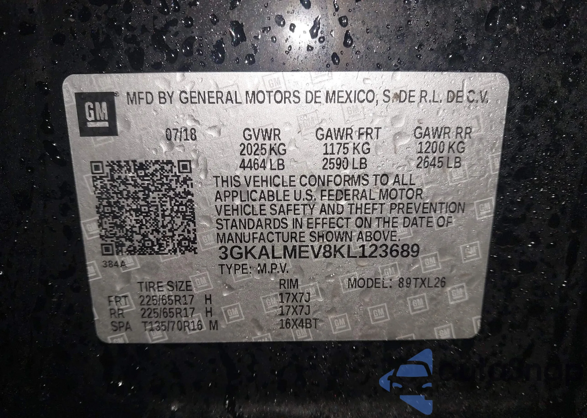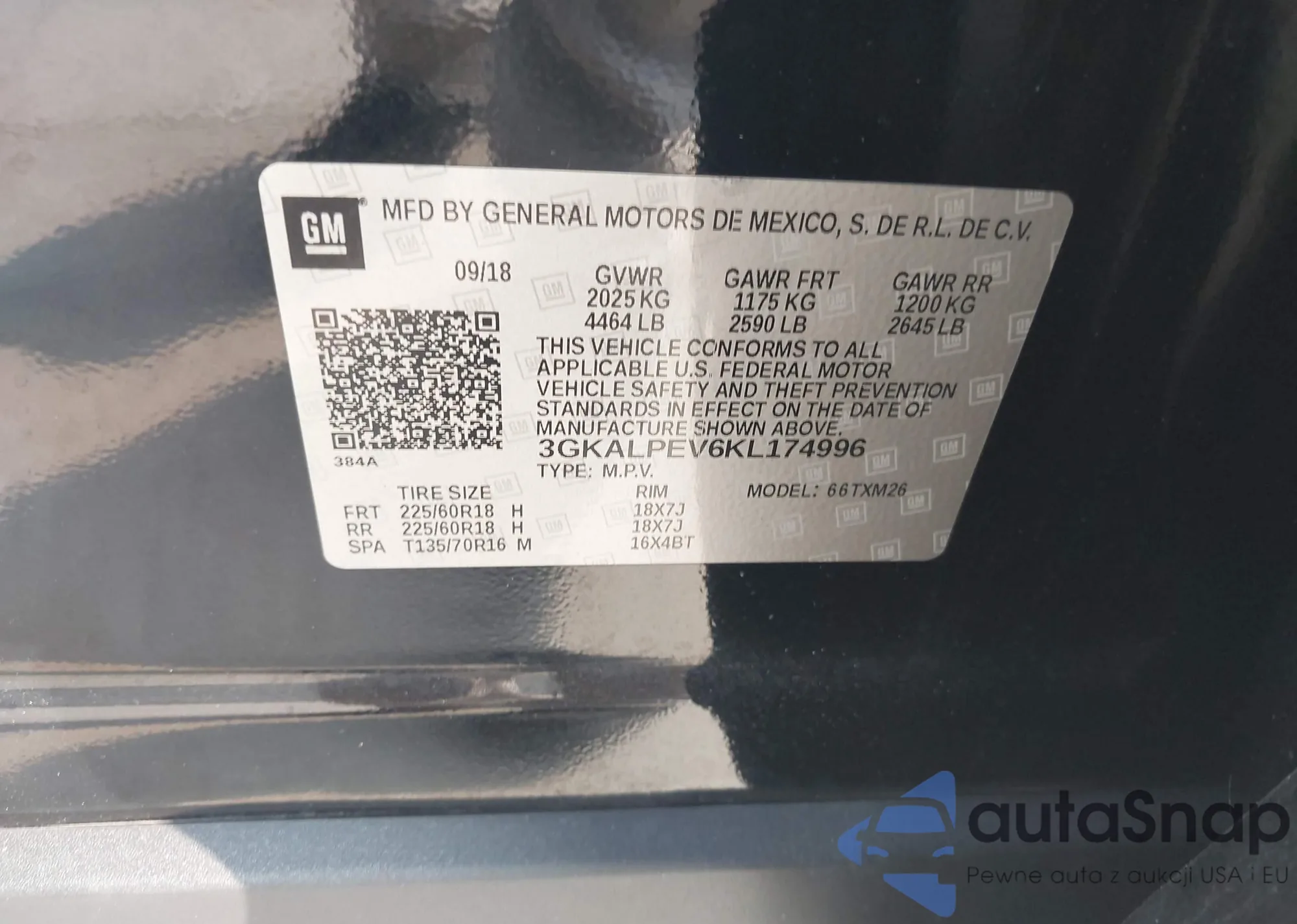 LOT: 44283075 VIN: 3GKALVEVXJL365405