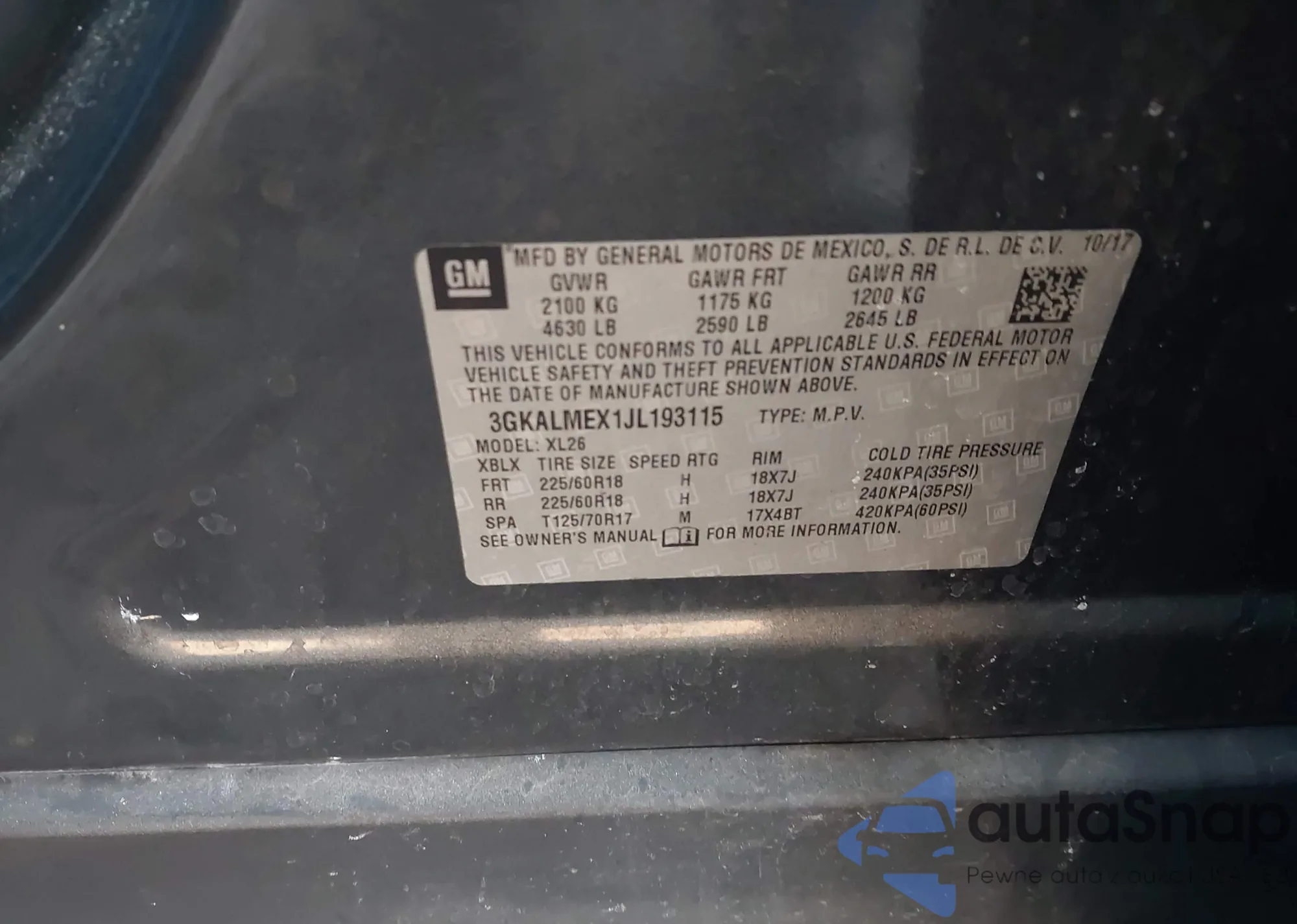• VIN 3GKALMEX1JL193115