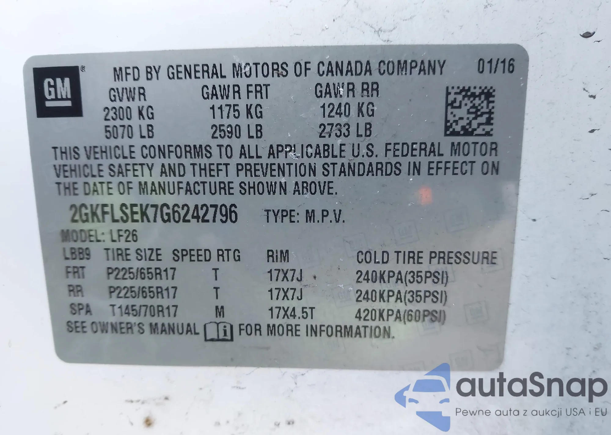 • VIN 2GKFLSEK7G6242796