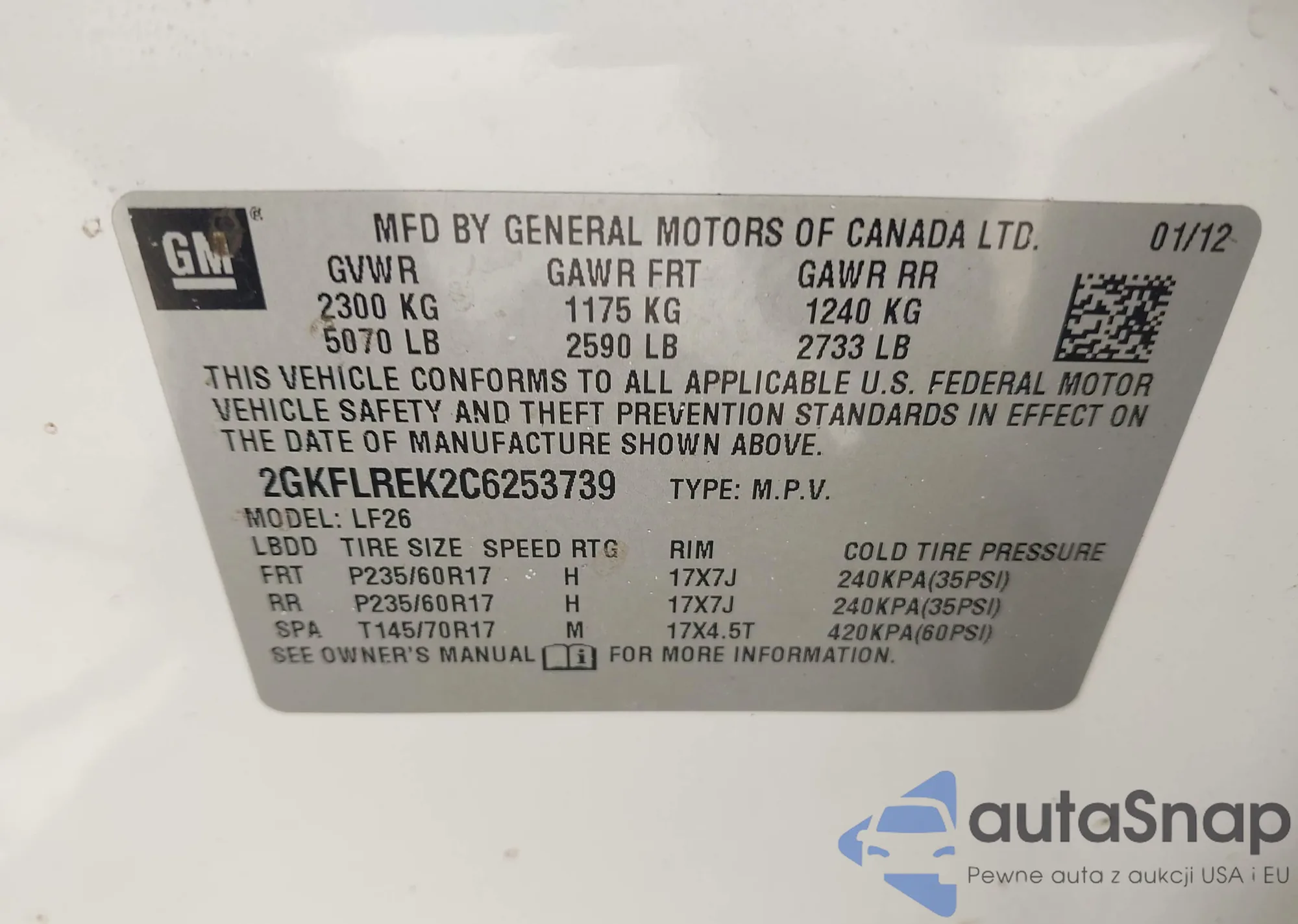 • VIN 2GKFLREK2C6253739