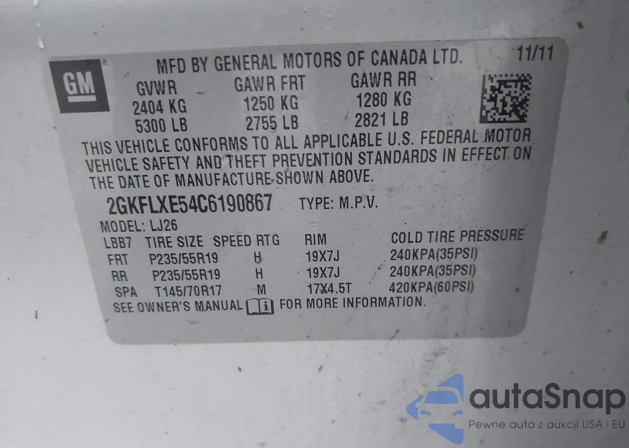 • VIN 2GKFLXE54C6190867