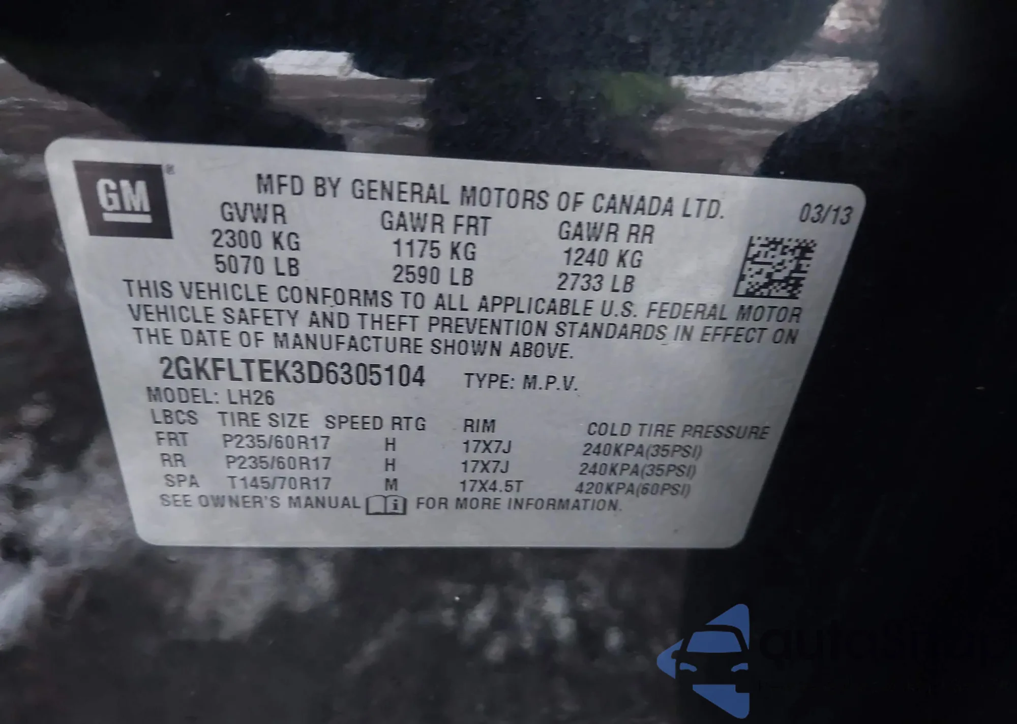 • VIN 2GKFLTEK3D6305104