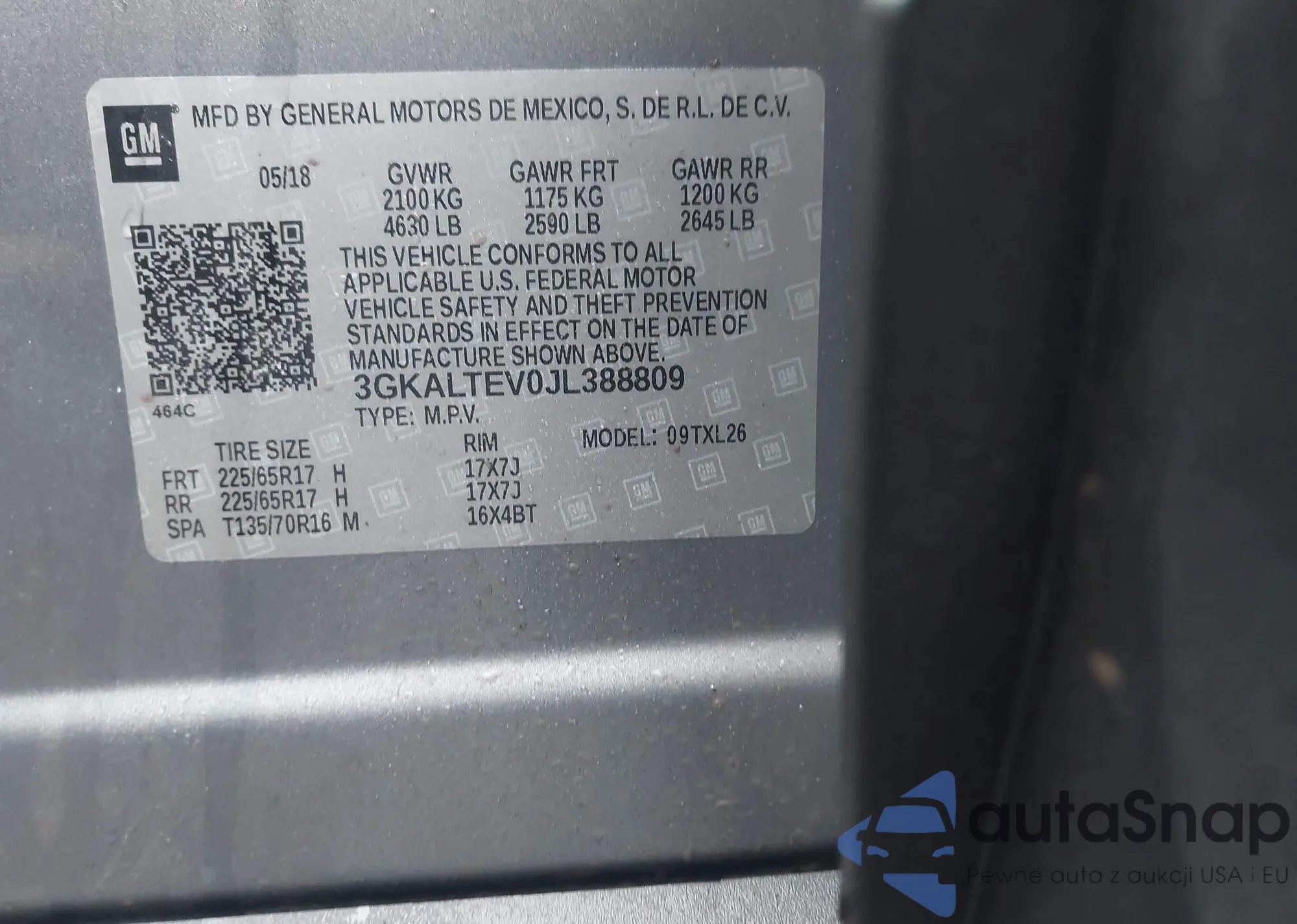 • VIN 3GKALTEV4JL352752