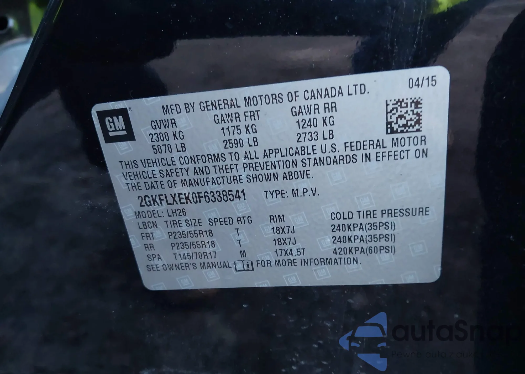 • VIN 2GKFLXEK0F6338541