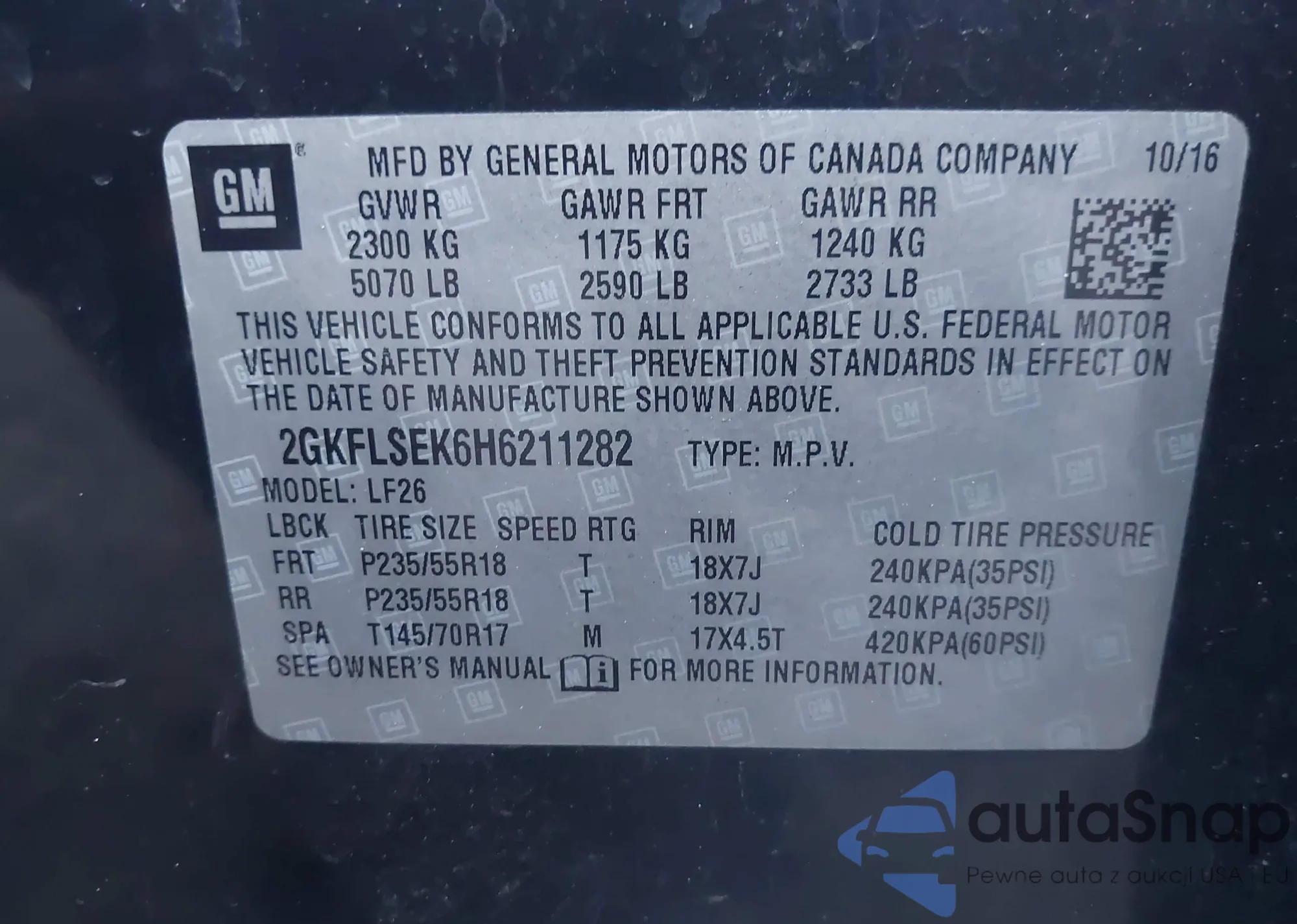 • VIN 2GKFLSEK6H6211282