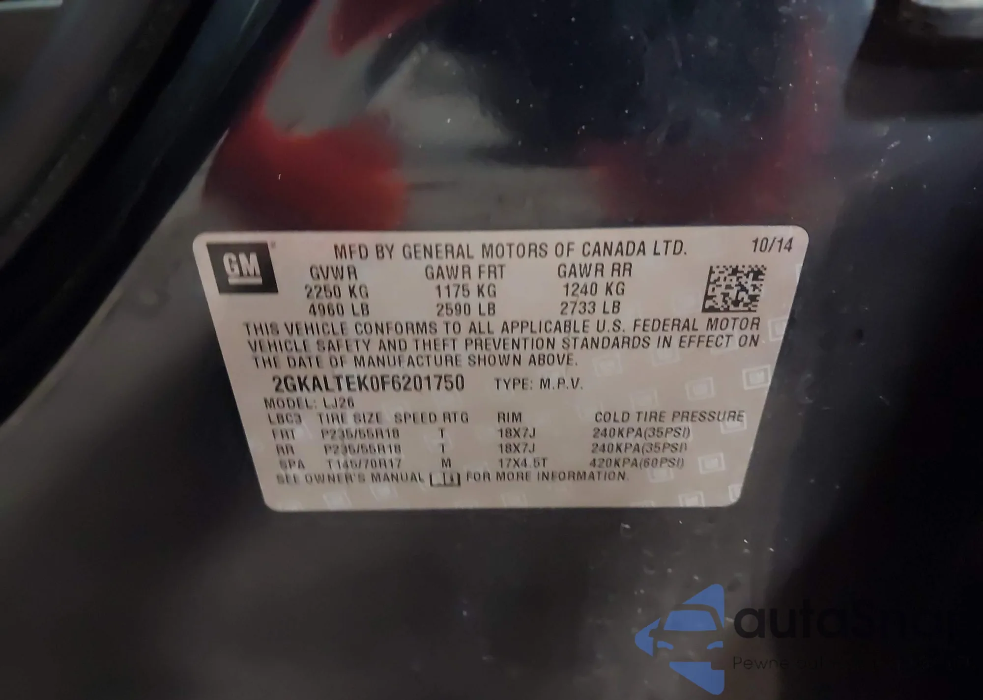 • VIN 2GKALTEK0F6201750